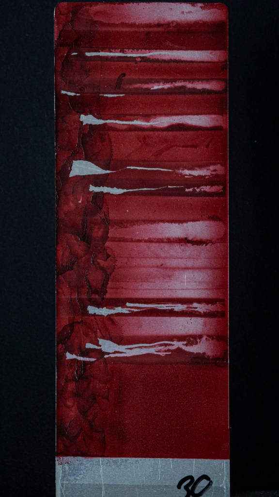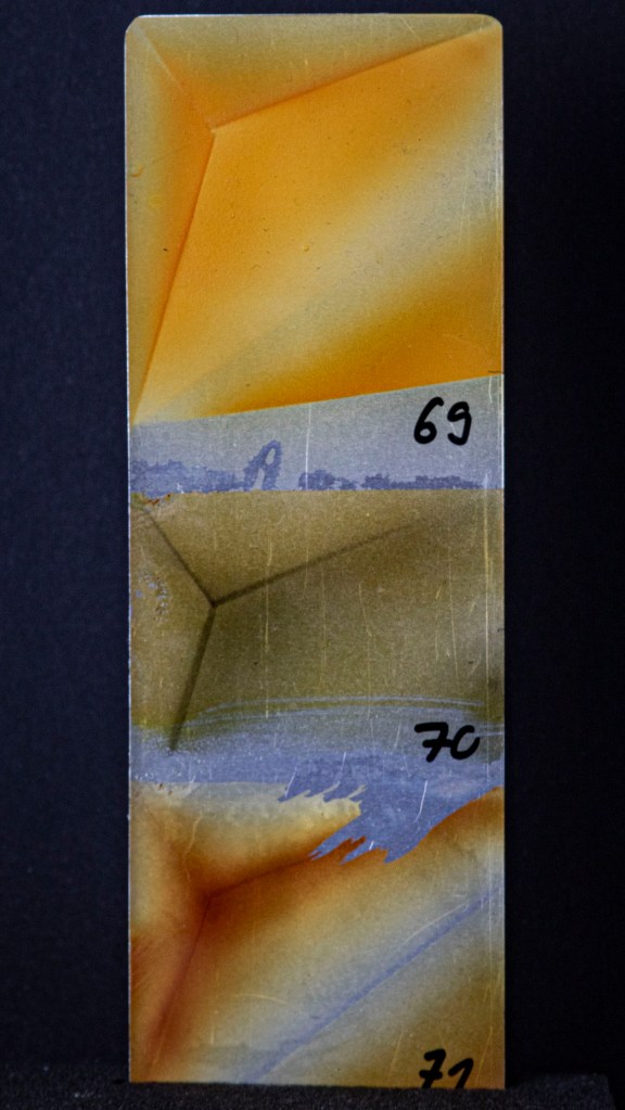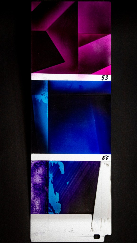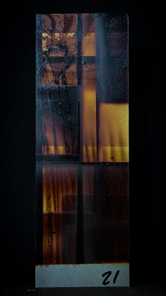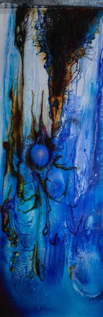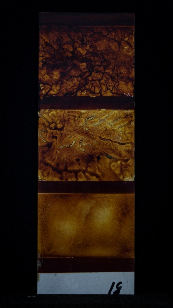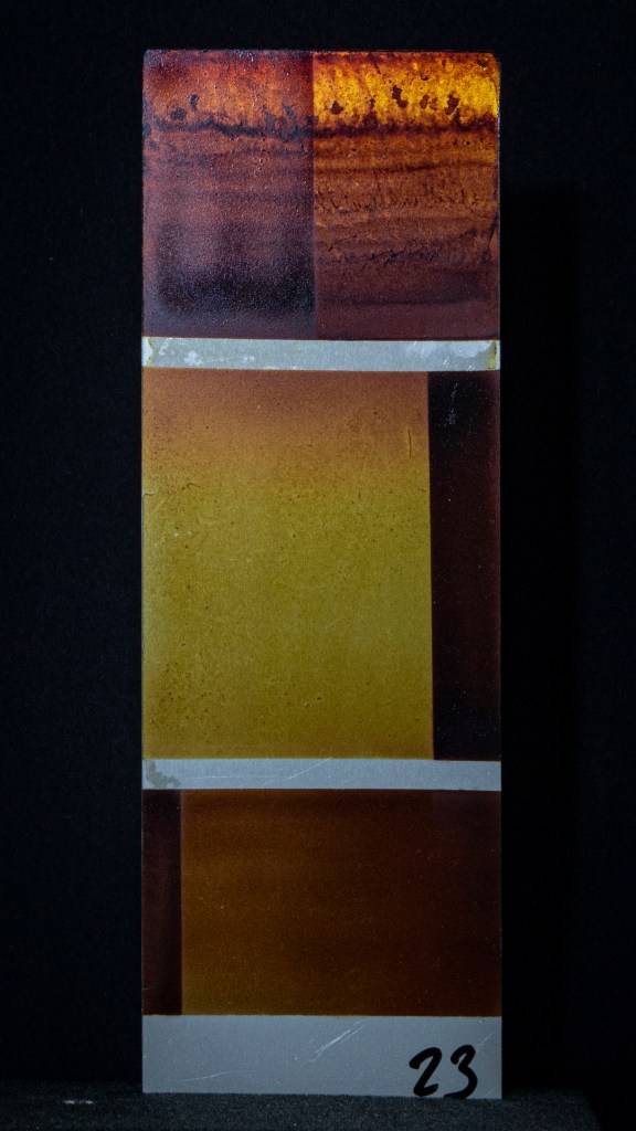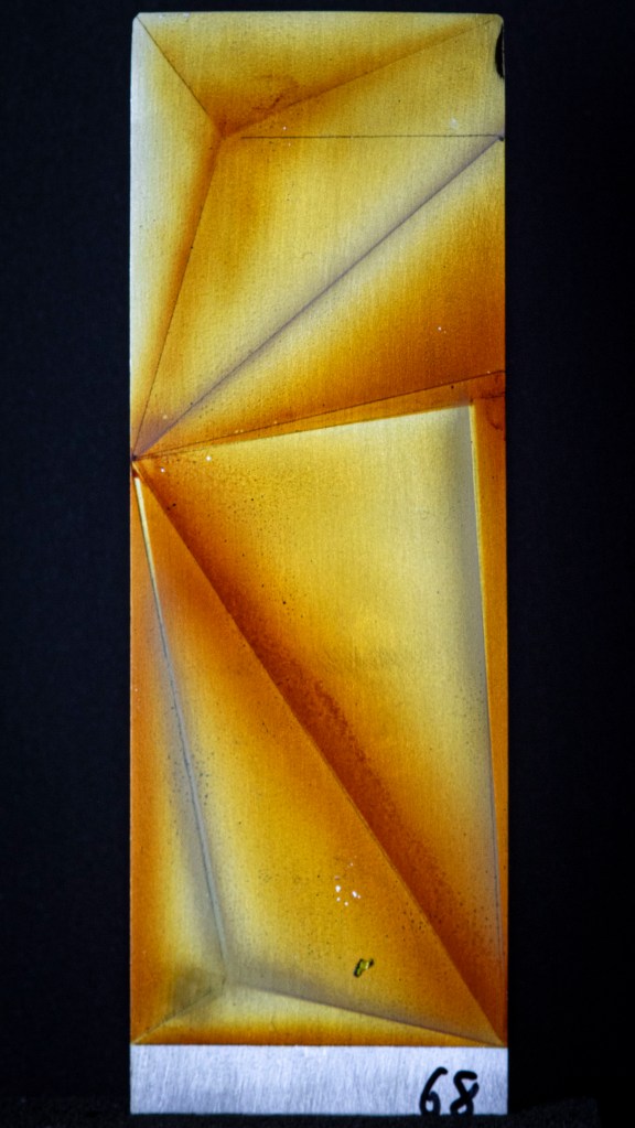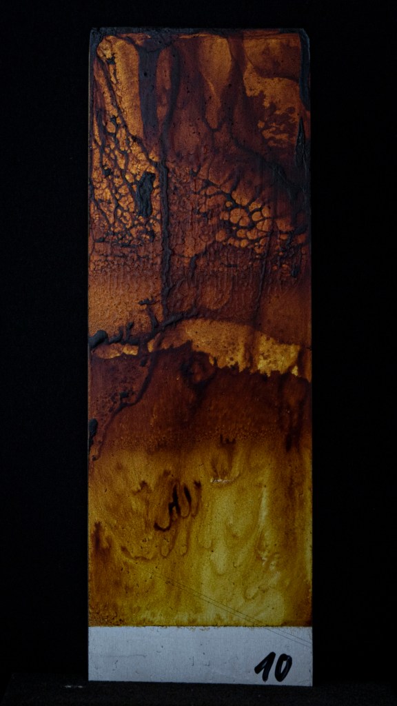 Aus ein paar Testversuchen zu dieser Ausgangslage wurde eine intensive, teilweise klärende Auseinandersetzung zwischen Transparenz, Form, Tiefe, Faltung, Raum, Auftrag, Abtrag, Lasierung, Lavinierung, Planung, Zufall, Unfall, aufwändiger Vollmaskierung und einfachstem Abklatsch.