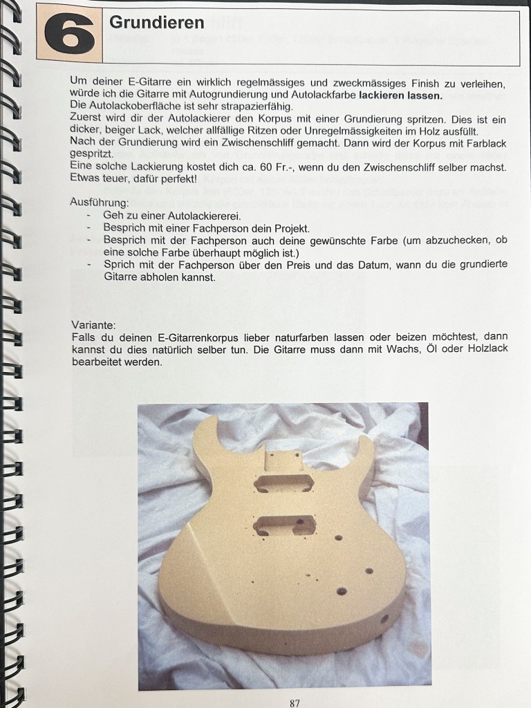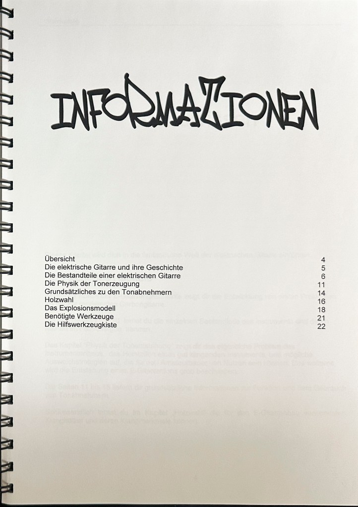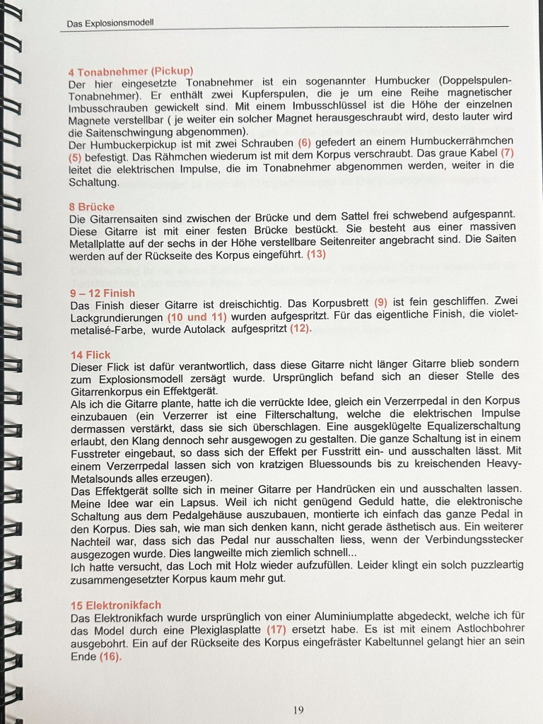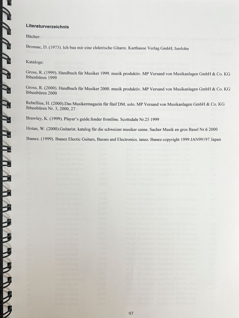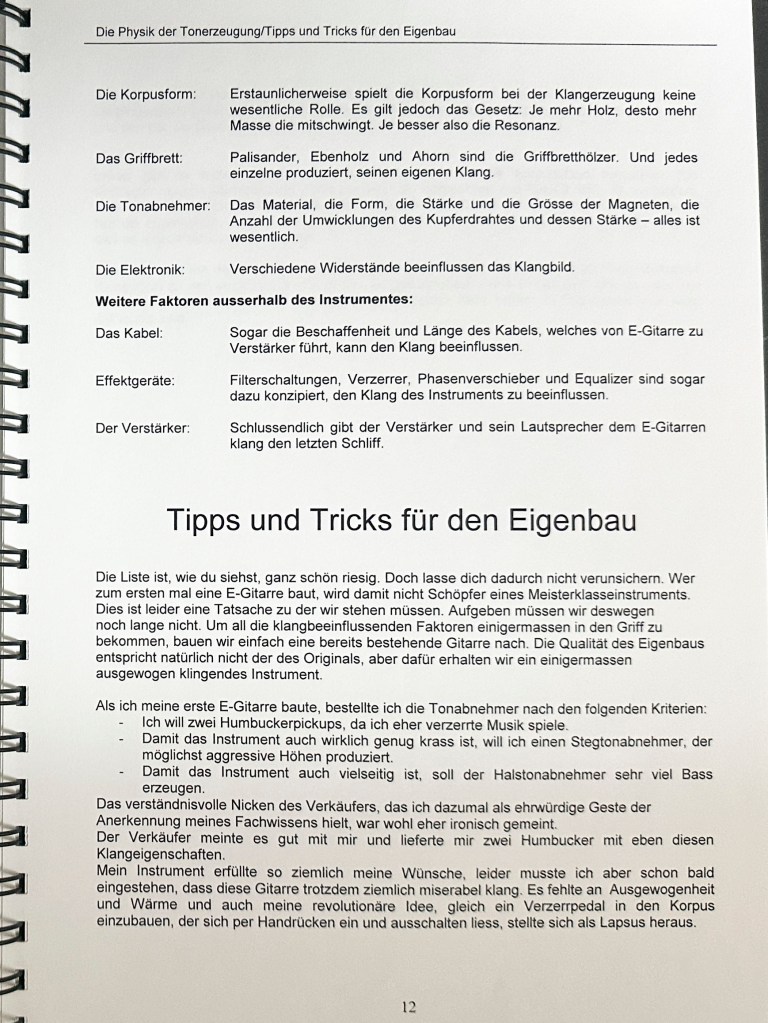 Die Ausbildung als Primarlehrer schloss ich mit dieser umfangreichen Diplomarbeit ab. Damals hatte ich mir schon ein grosses Wissen im Bereich Elektrischer Gitarren angeeignet und bereits 2 solcher Instrumente gebaut. Mit der Diplomarbeit wollte ich das vorhandene Wissen bündeln und Werklehrer:Innen und jugendliche DIY Enthusiast:Innen zugänglich machen.