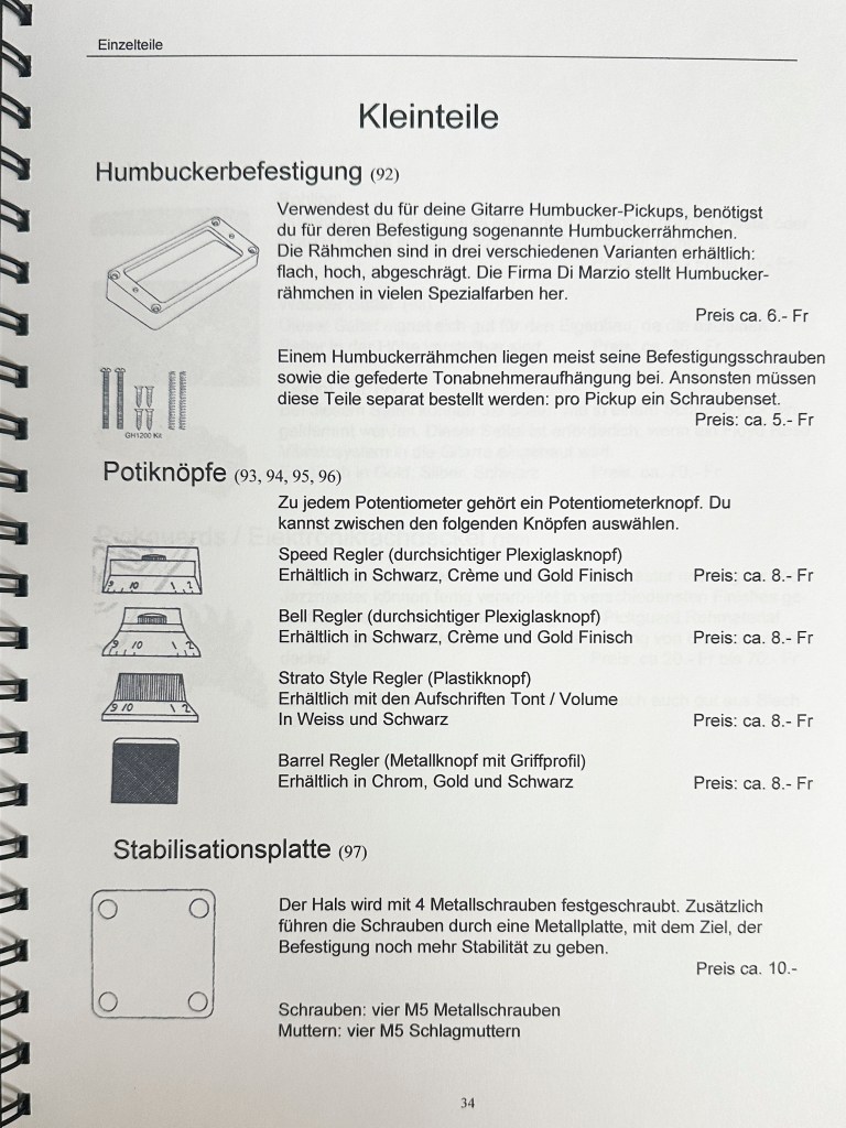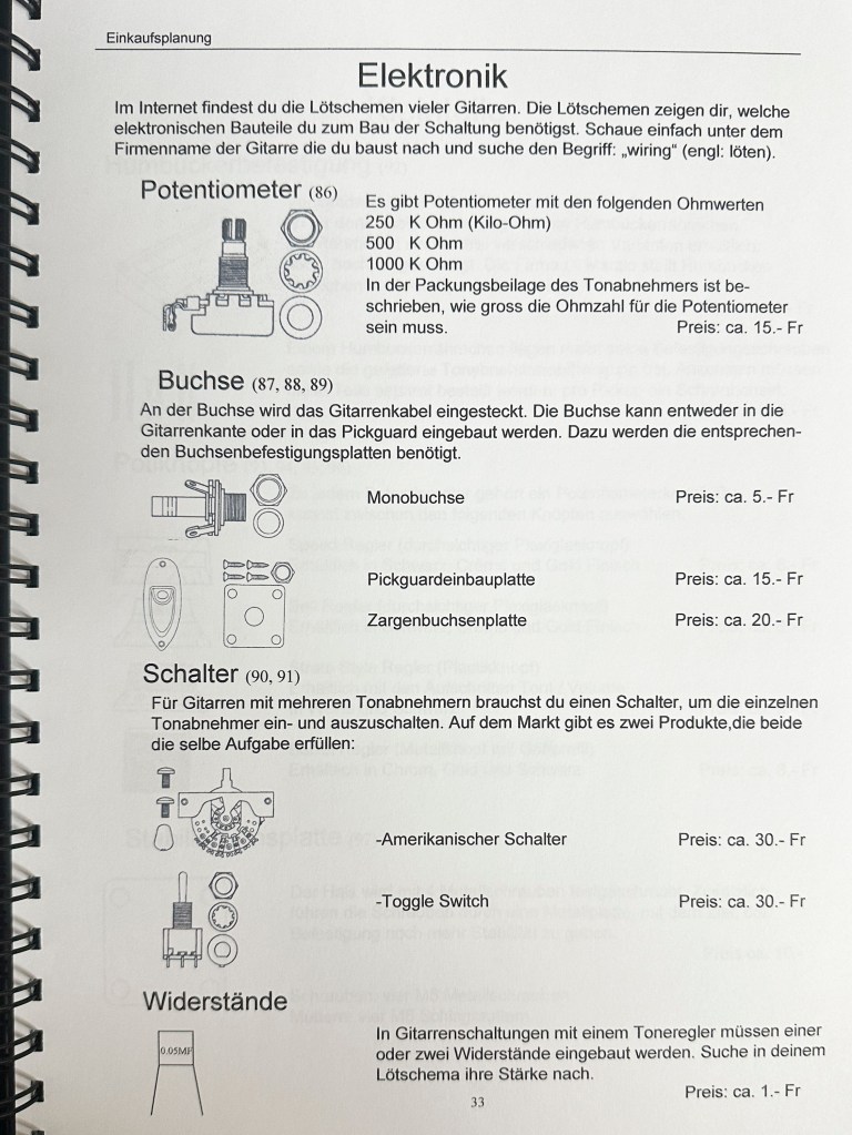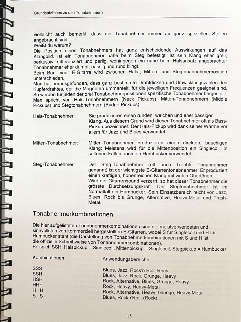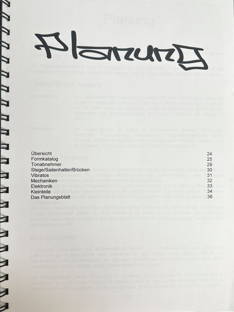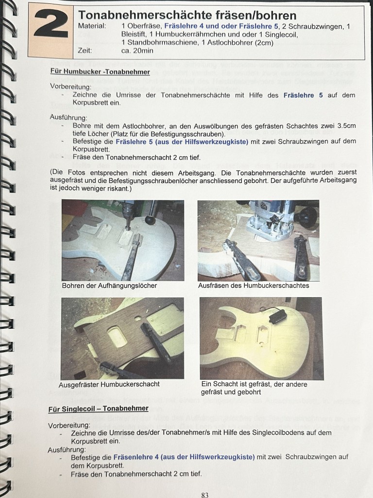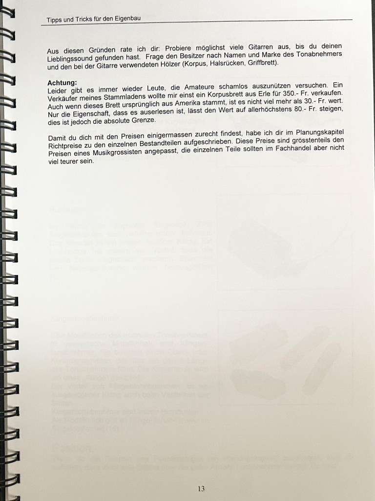 Die Ausbildung als Primarlehrer schloss ich mit dieser umfangreichen Diplomarbeit ab. Damals hatte ich mir schon ein grosses Wissen im Bereich Elektrischer Gitarren angeeignet und bereits 2 solcher Instrumente gebaut. Mit der Diplomarbeit wollte ich das vorhandene Wissen bündeln und Werklehrer:Innen und jugendliche DIY Enthusiast:Innen zugänglich machen.