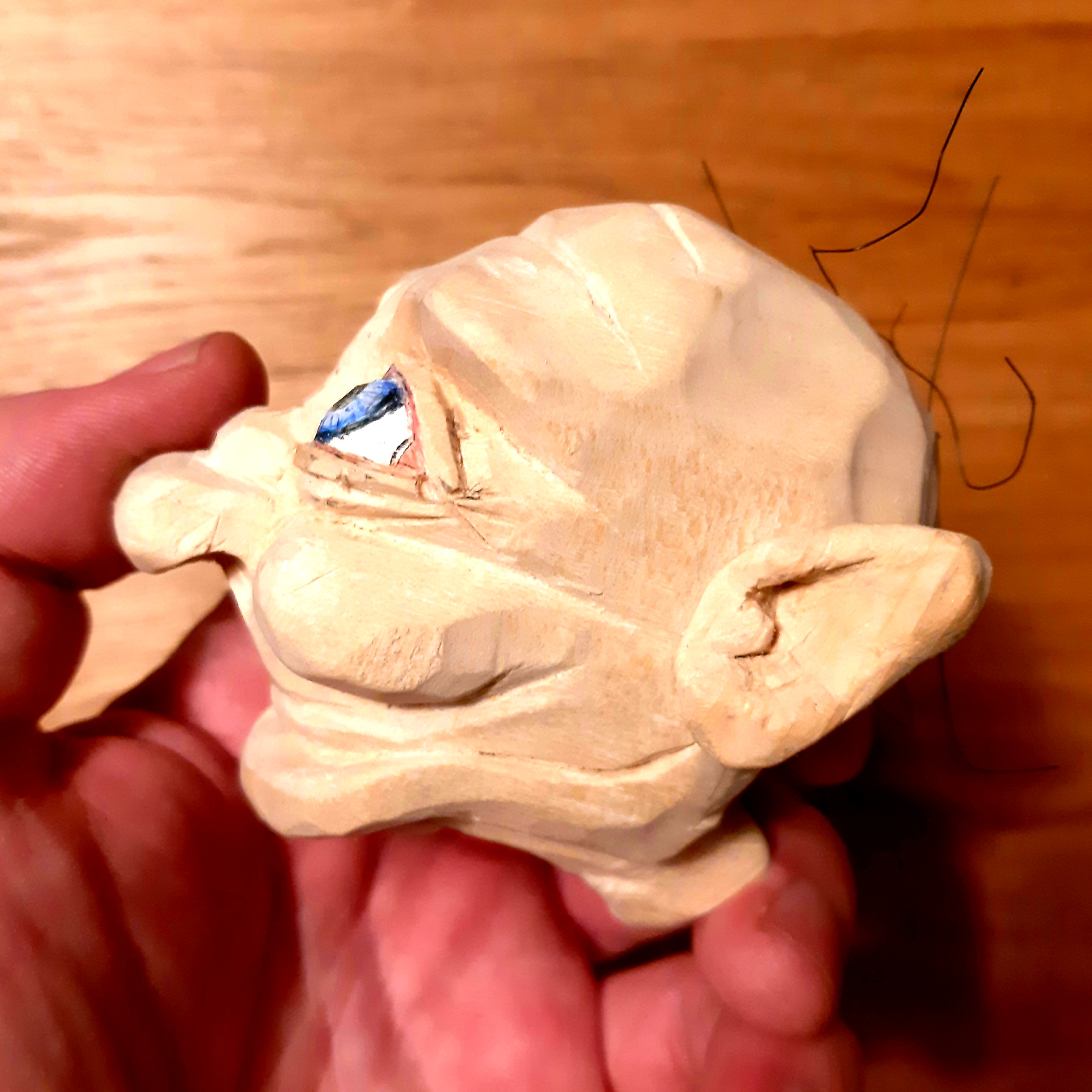Auch diese Schnitzarbeit wurde hauptsächlich mit ein und demselben Messer ausgeführt und bringt alles zusammen, was mir am „whittling“ so gefällt.