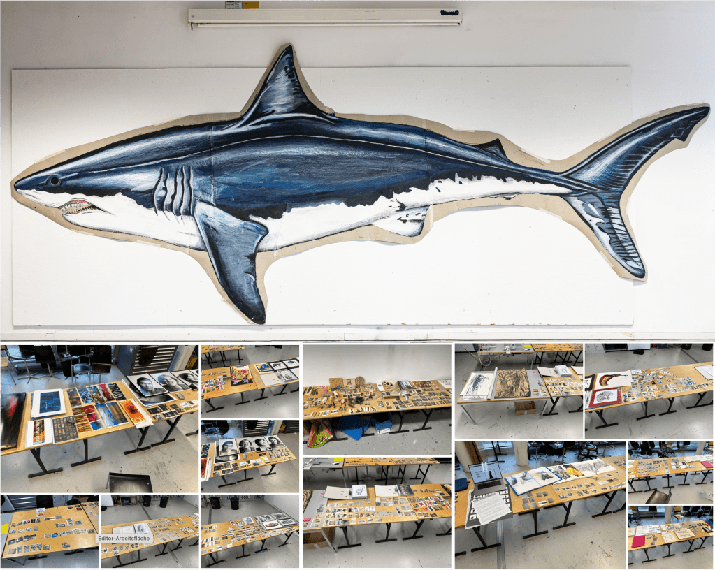 Januar 2024, ZHdK, Auslage „ALLER“ bisherigen Werke für Portfolio (die meisten als Kontaktabzug-Bilder)