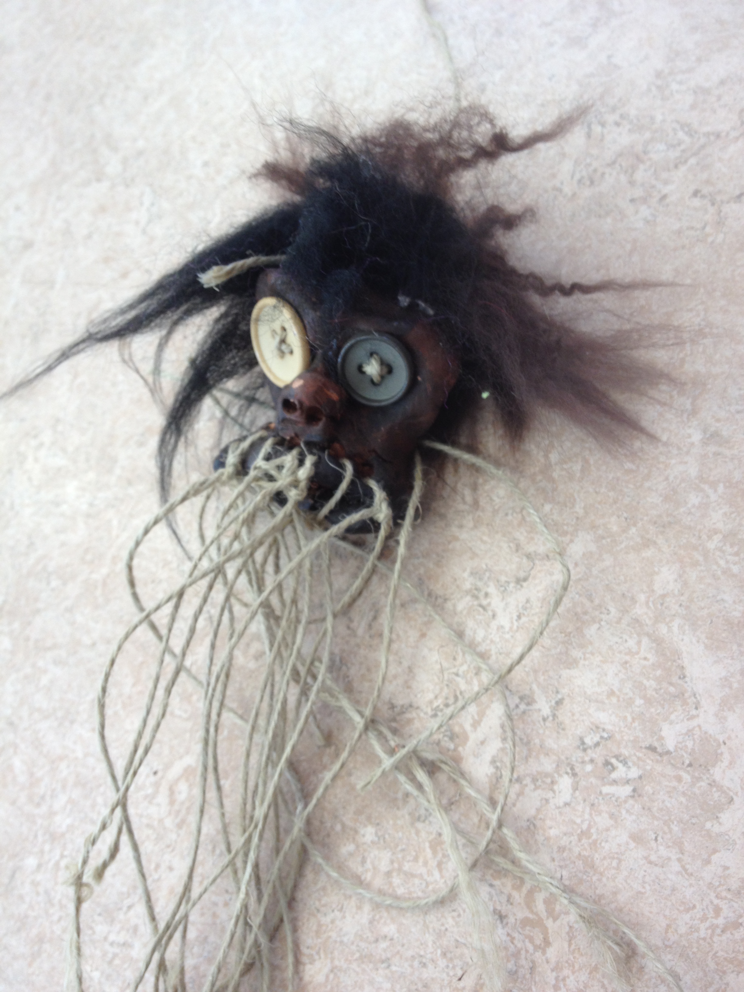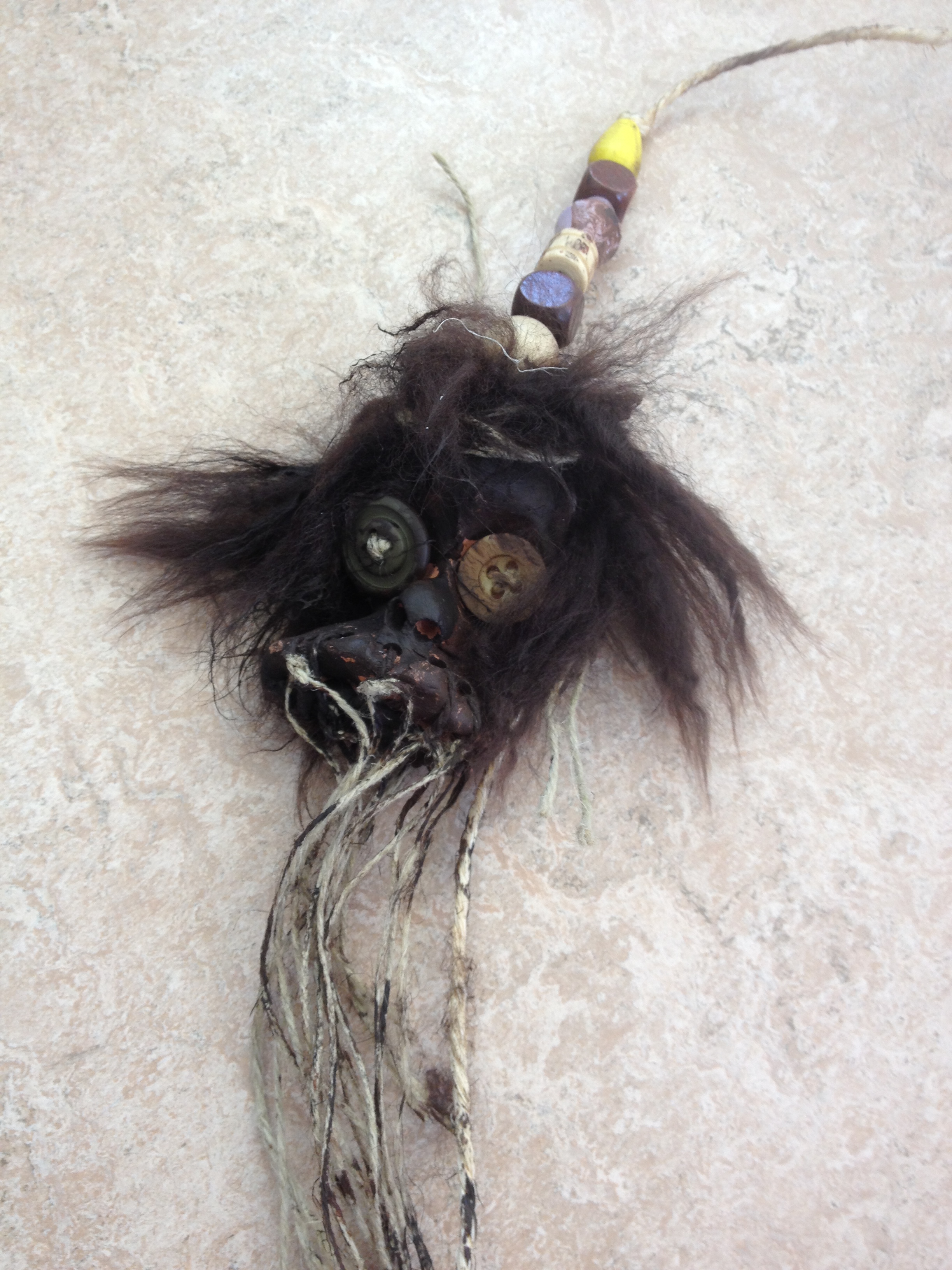 lufttrocknende Modelliermasse, Perlen, Schnüre, Papierknochen, Knöpfe, Fell, Holzkugeln, Farbe
