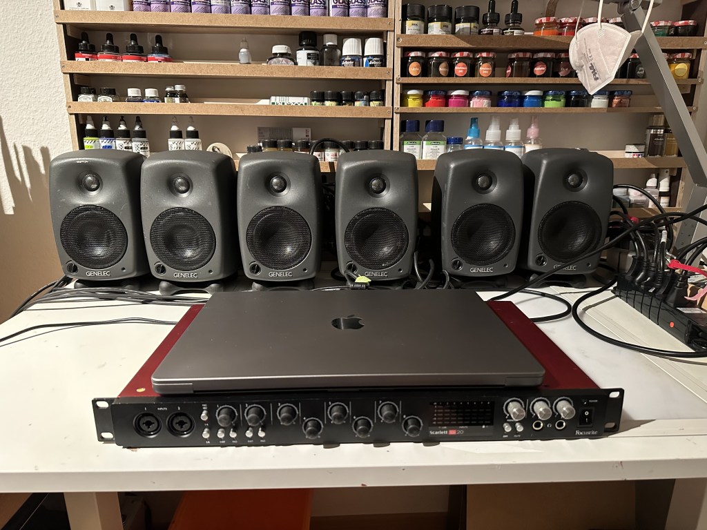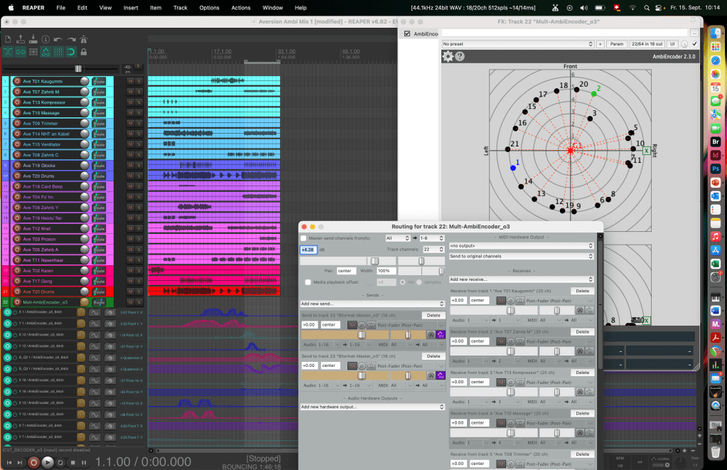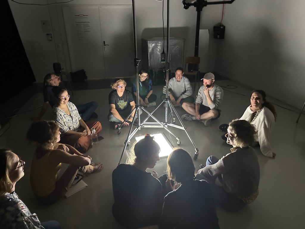 Die beiden ersten Stücke wurden mit der am ICST entwickelten AmbiSonic-Sourround-PlugIn (Johannes Schütt) weiter bearbeitet und kamen am 16.9.23 in kompletter Dunkelheit zu einer eindrücklichen 6-Kanal-Audio-Performance.