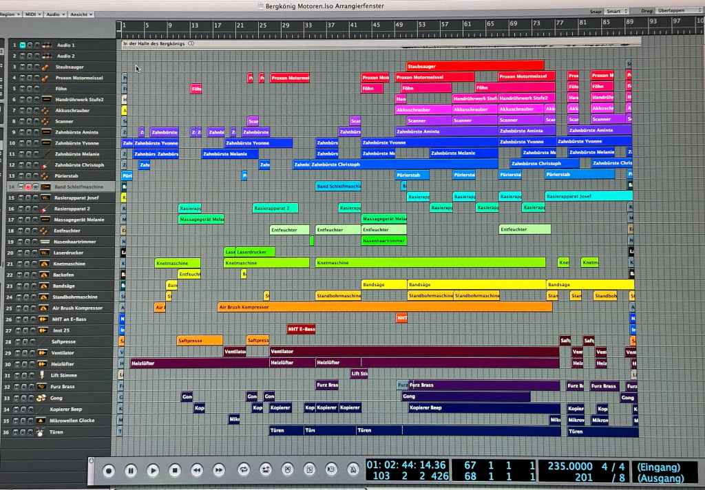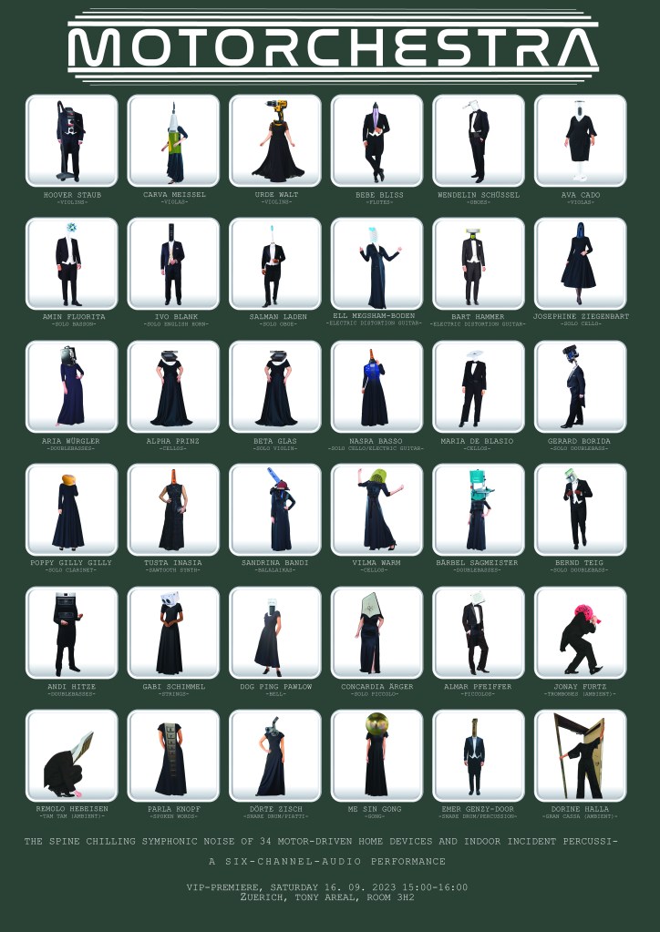 Ein aberwitziges digitales Orchester aus Aufnahmen von 36 Elektro-Motorgeräuschen und Alltagsklängen.
