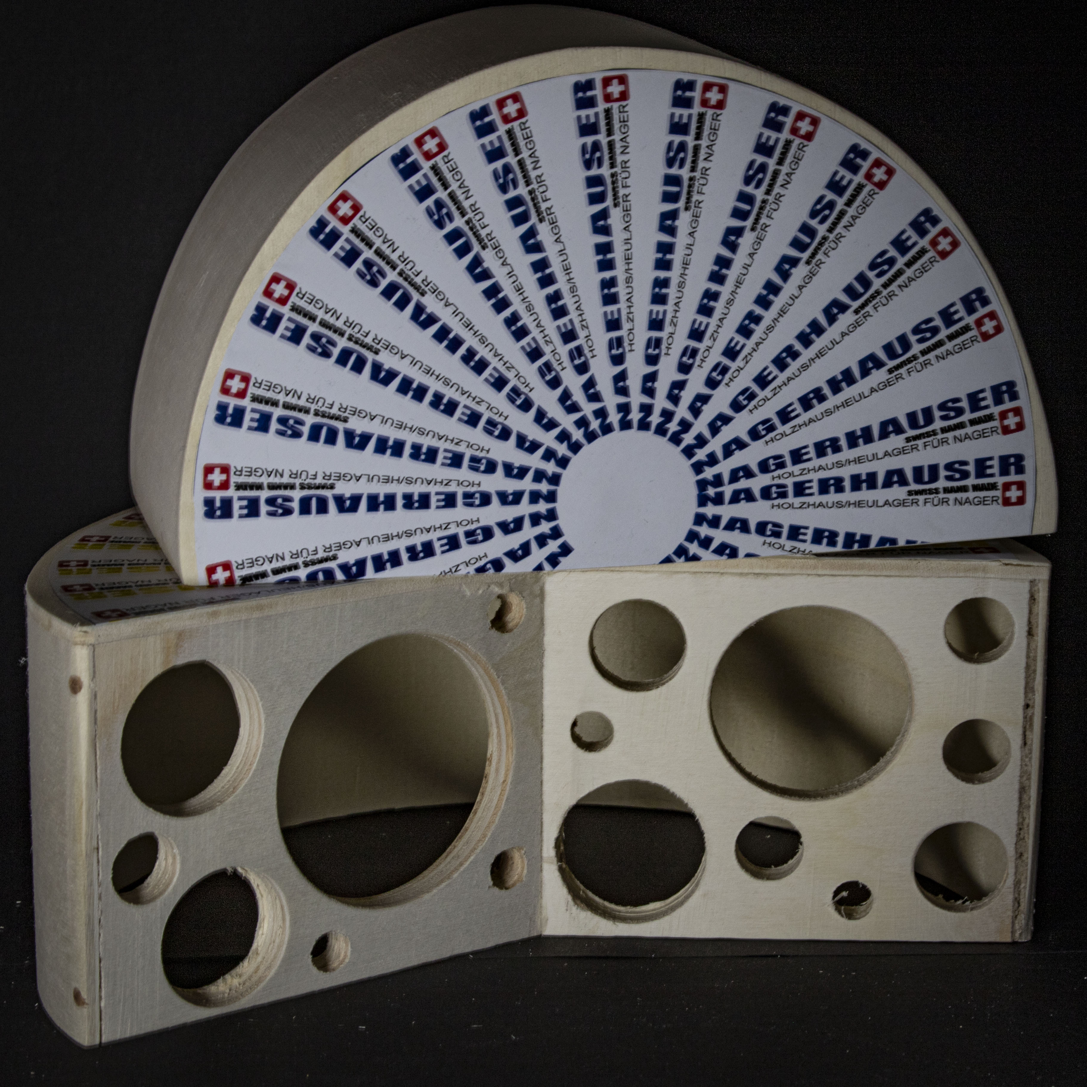 Objekte mit gebogenem Holz, ohne Nägel mit Holzzäpfchen verbunden. Damit sich die kleinen Nager auch wohl fühlen…
