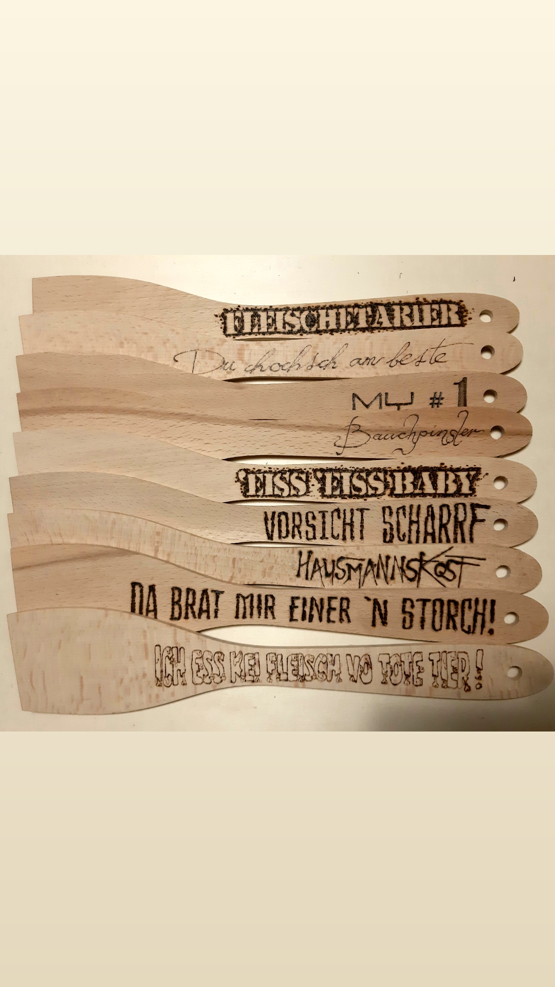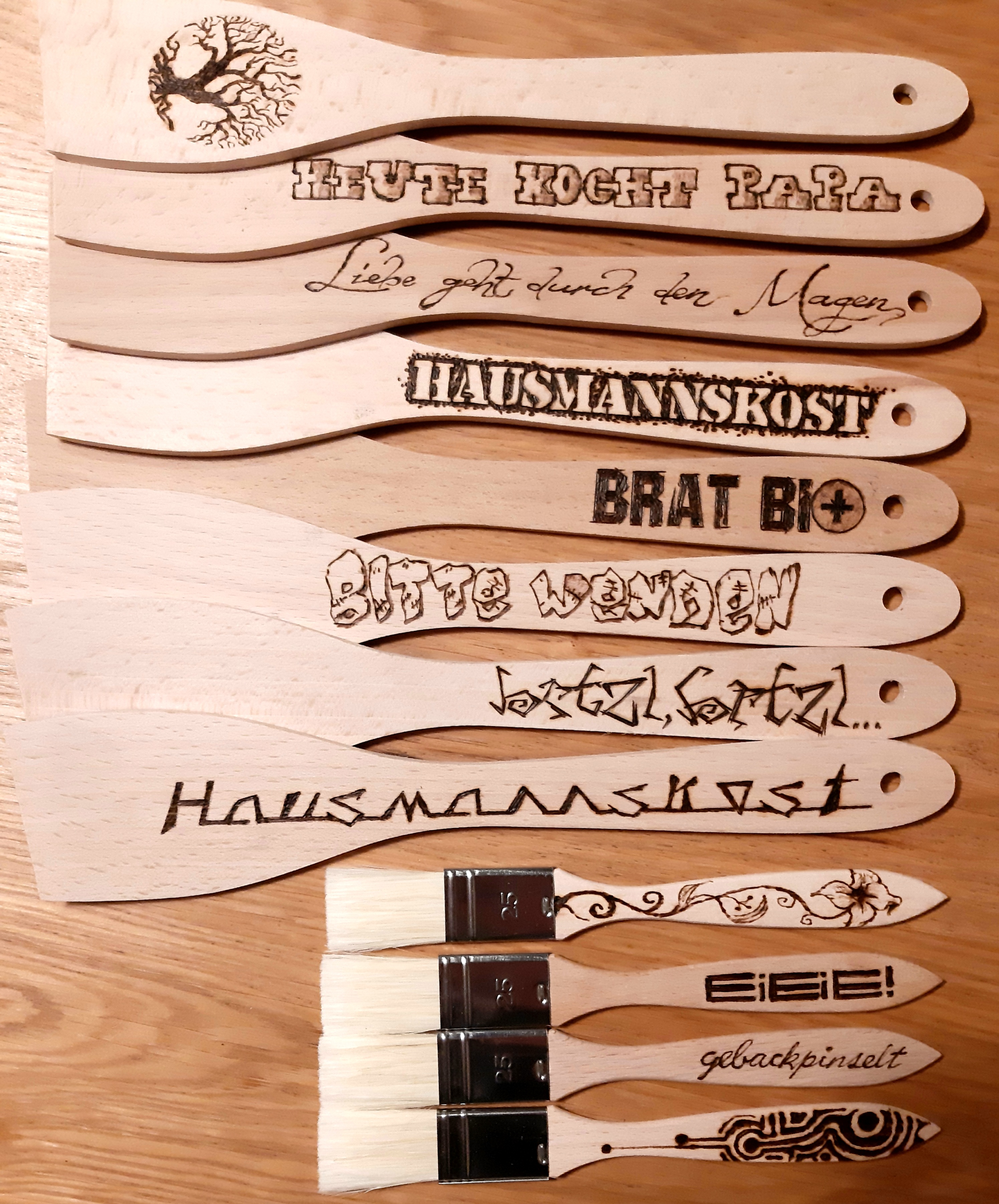Alle Motive und Schriften von Hand eingebrannt.
