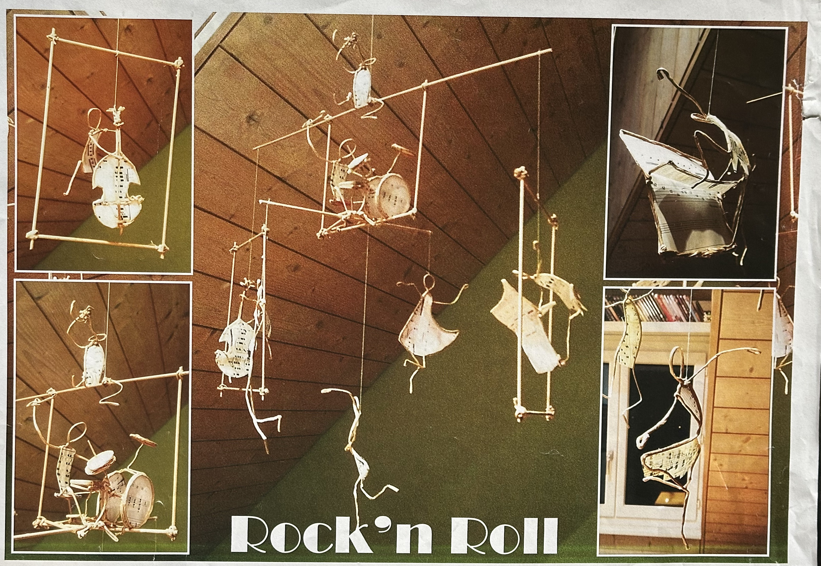 Gewisse Arbeiten entstehen ohne Grund oder Thema. So war es bei diesem Mobile aus Blumendraht, Papier und Holzstächen.