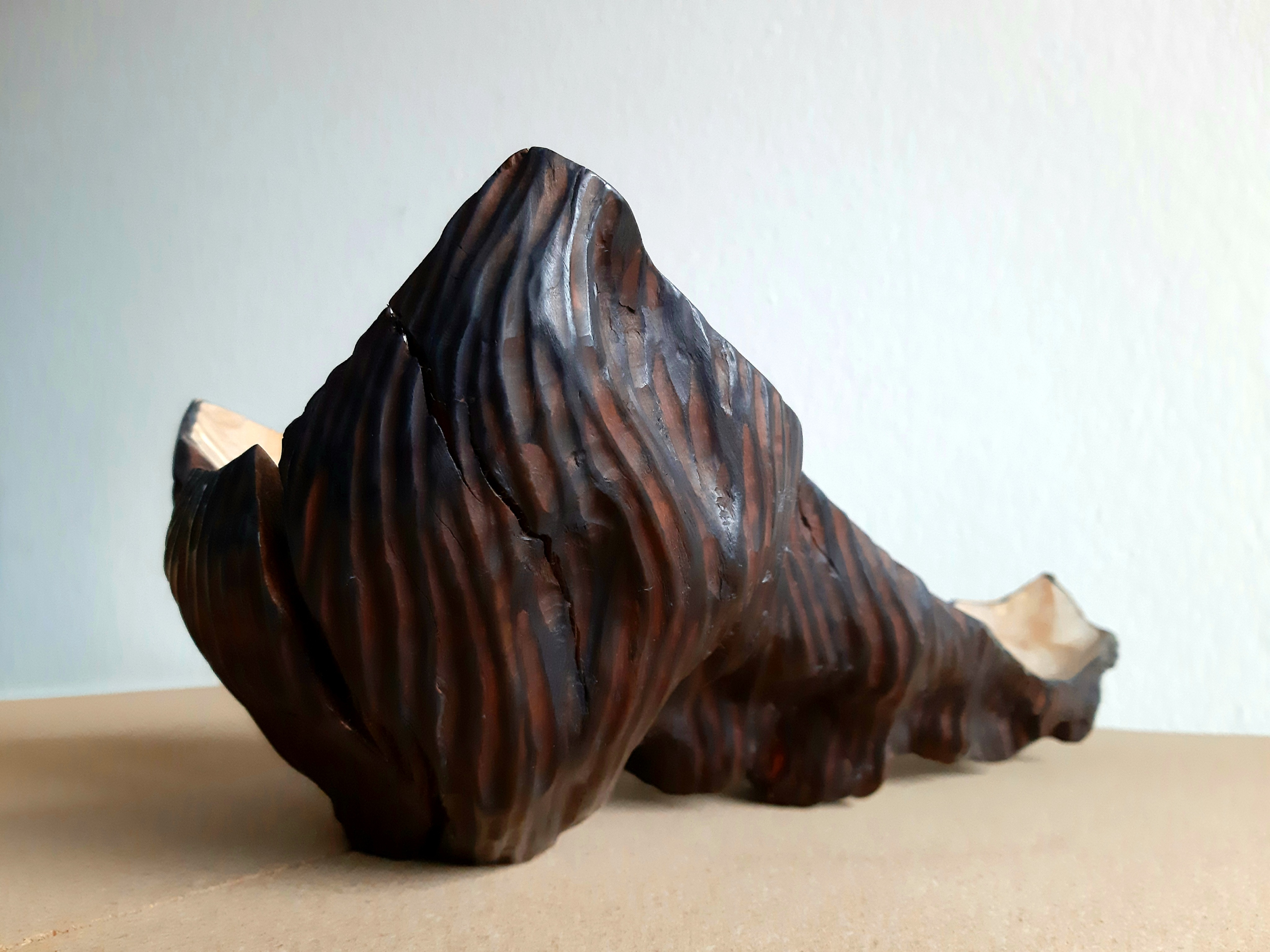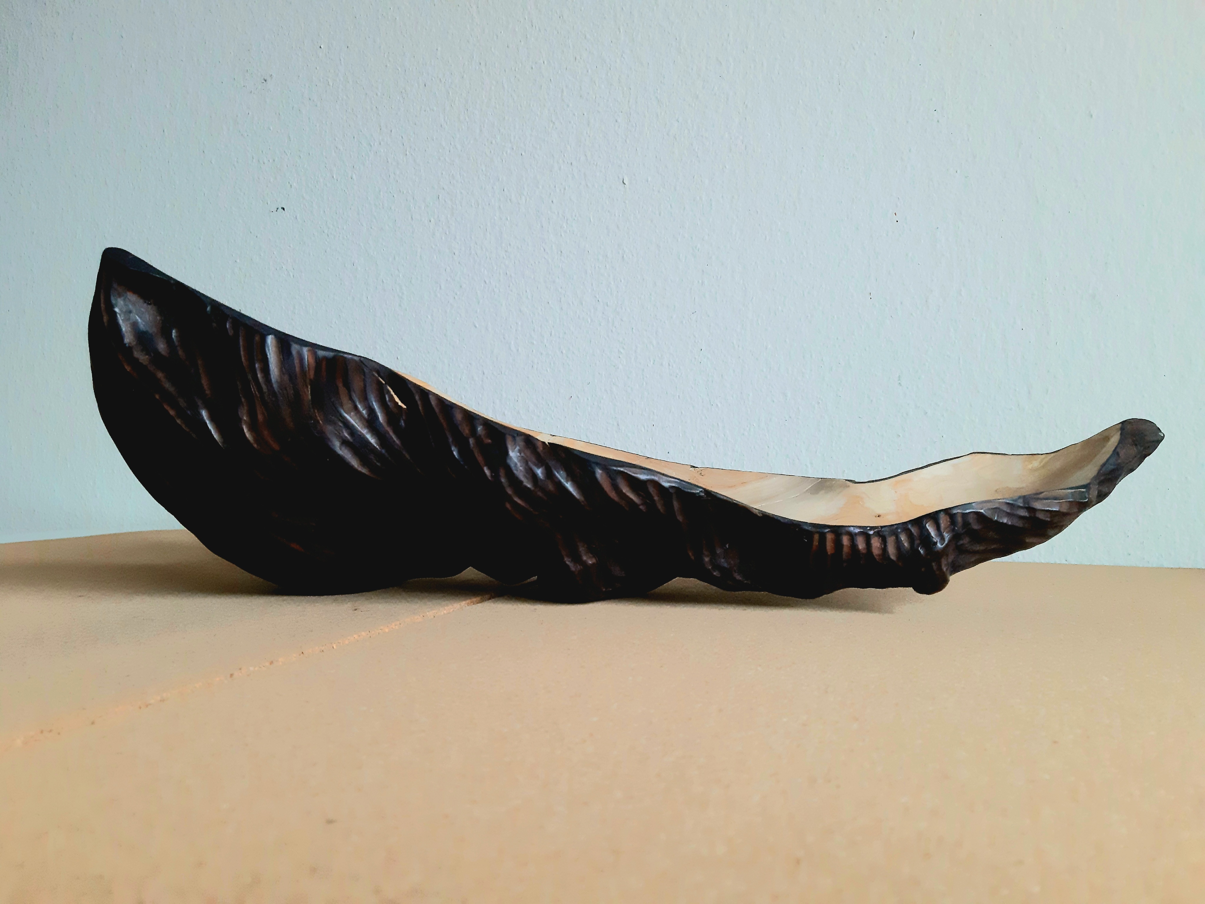 Knochenarbeit nicht nur wegen der schwierig zu fixierenden Form und dem sehr harten Holz. In der Zeit in der die Schale entstand, hatte ich einen Tennisarm (Folge eines Linolschnitts in Grösse A2).