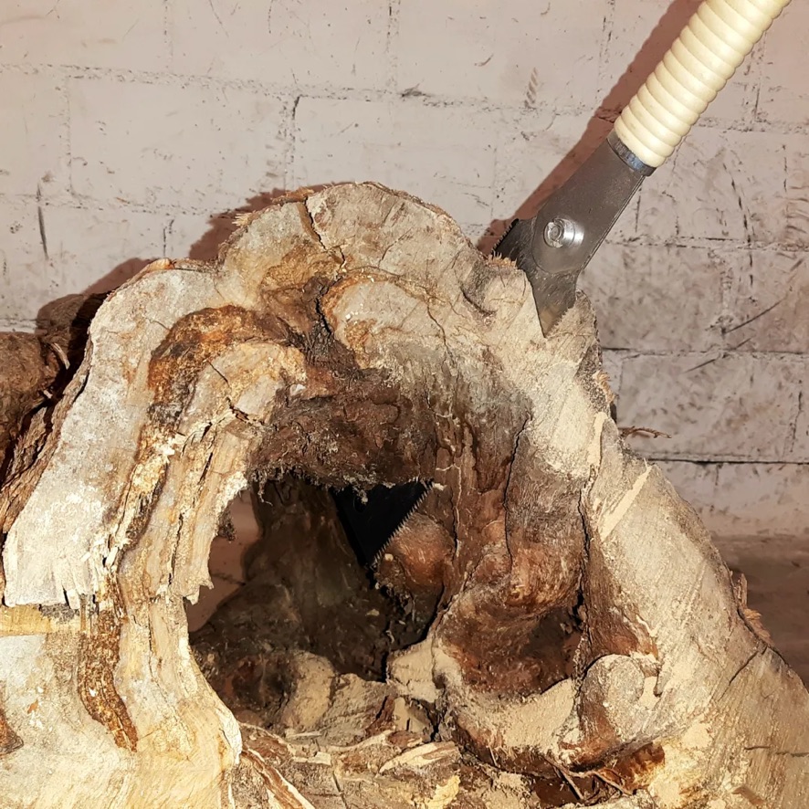 Der Strunk war innen hohl, das Holz an vielen Stellen morsch. In der Nähe der Borke war eine zwischen 2cm – 5cm starke intakte, sehr harte Holzschicht übrig geblieben.