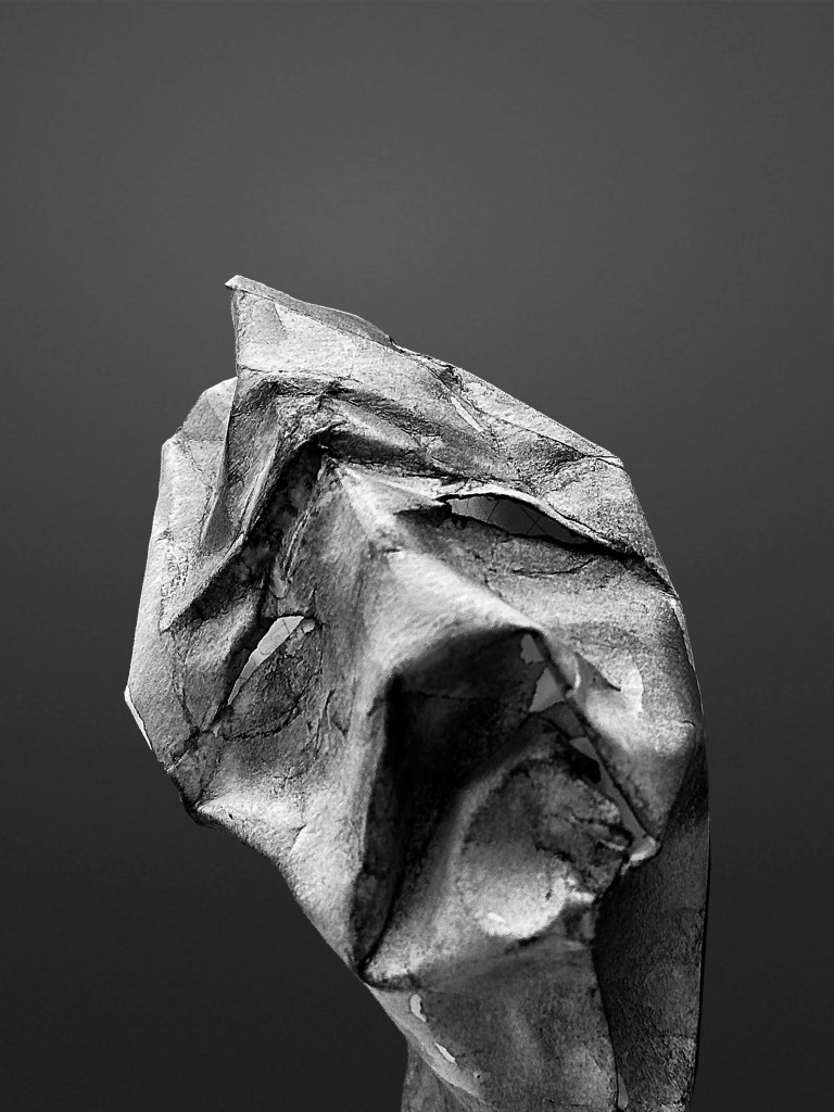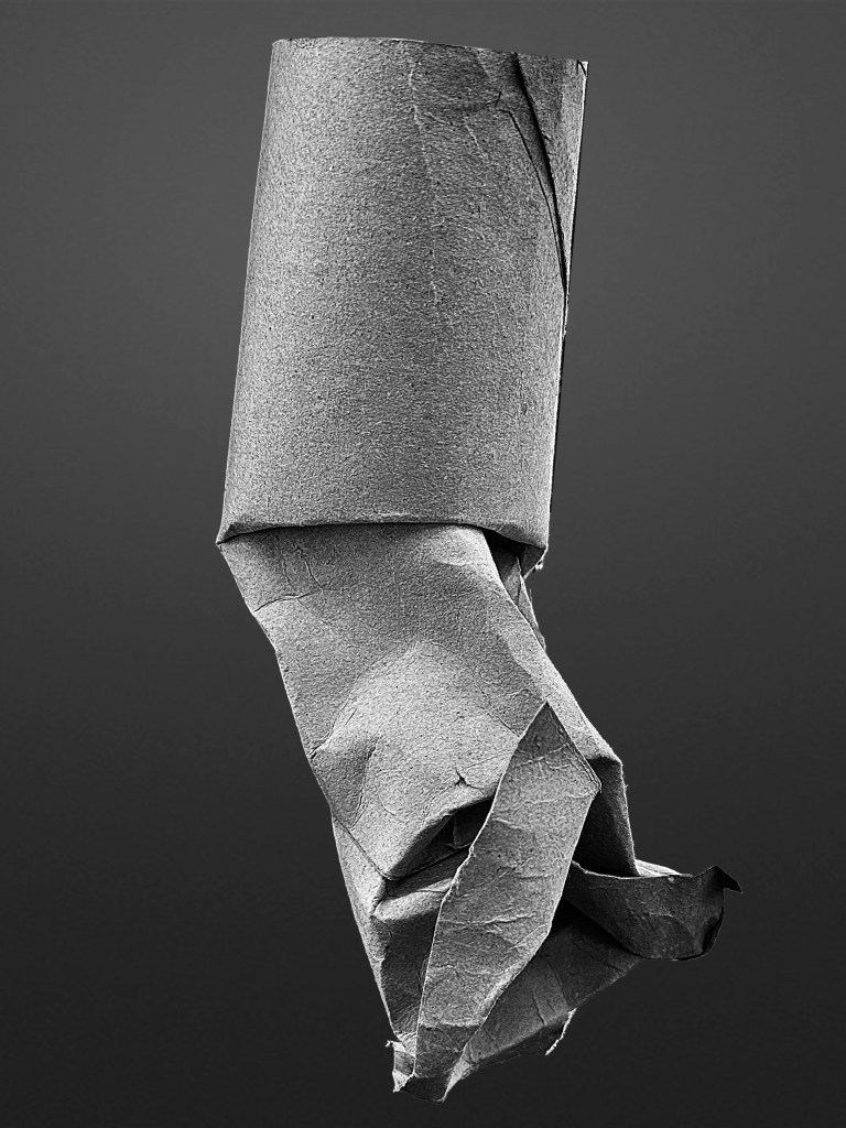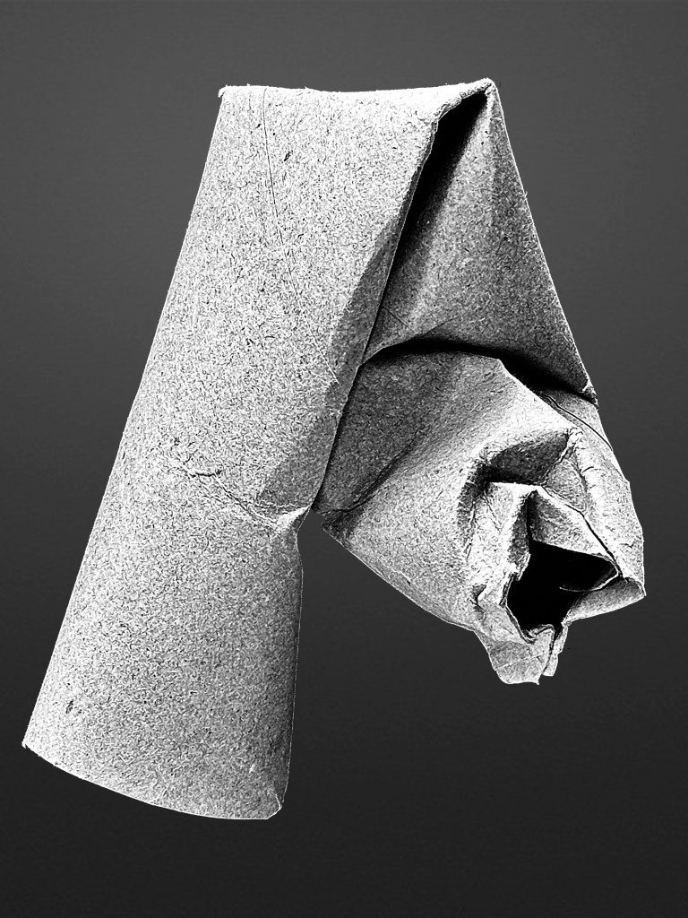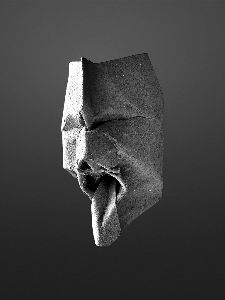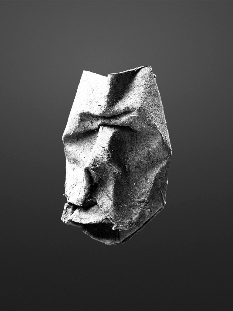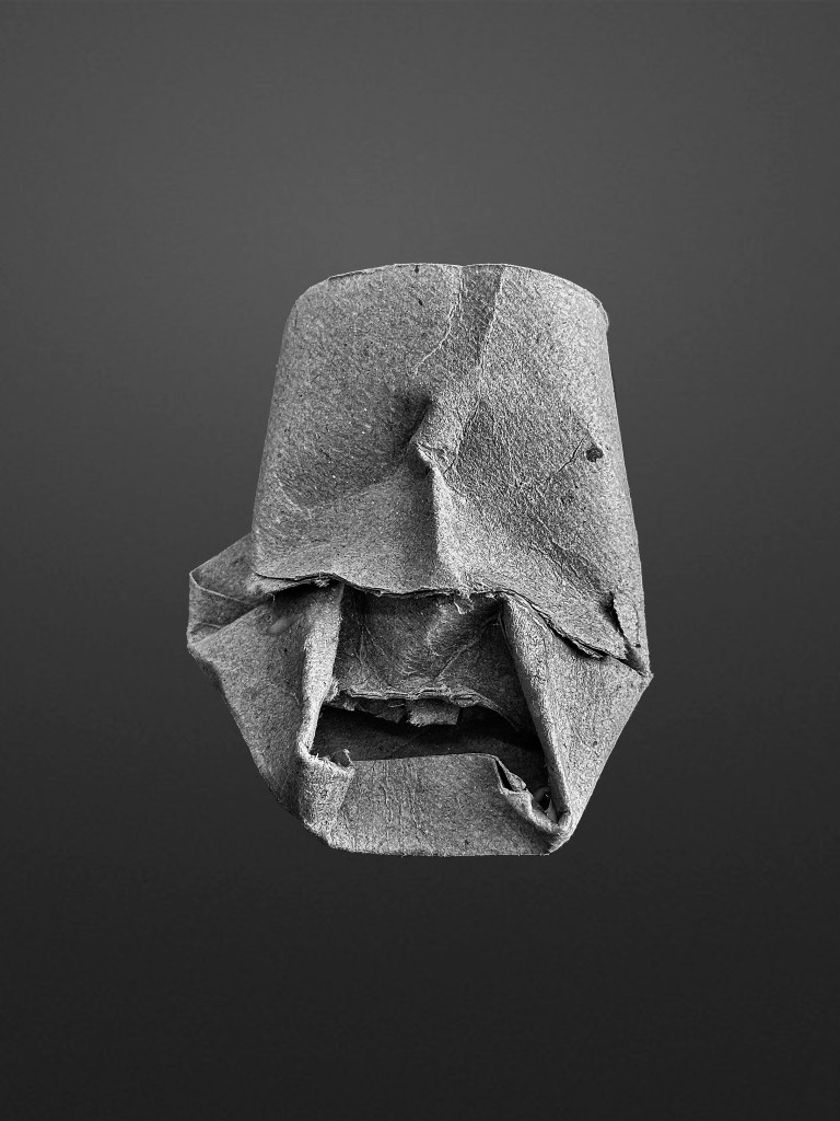 Alle diese Köpfe sind aus ganzen, geschlossenen WC-Rollen, Papp- oder Papierrollen geformt. Dabei wurde kein Material weggeschnitten oder aufgetragen.