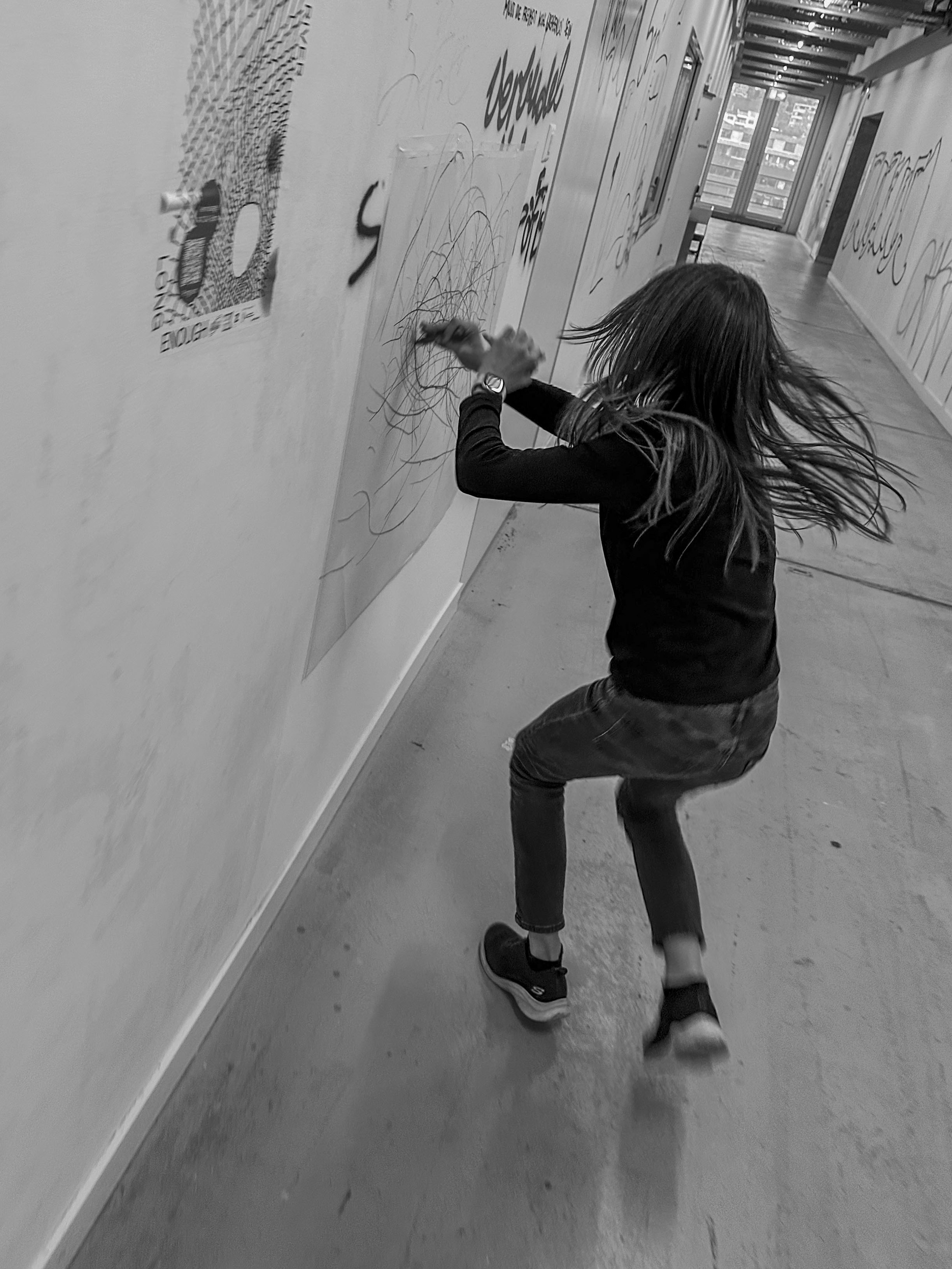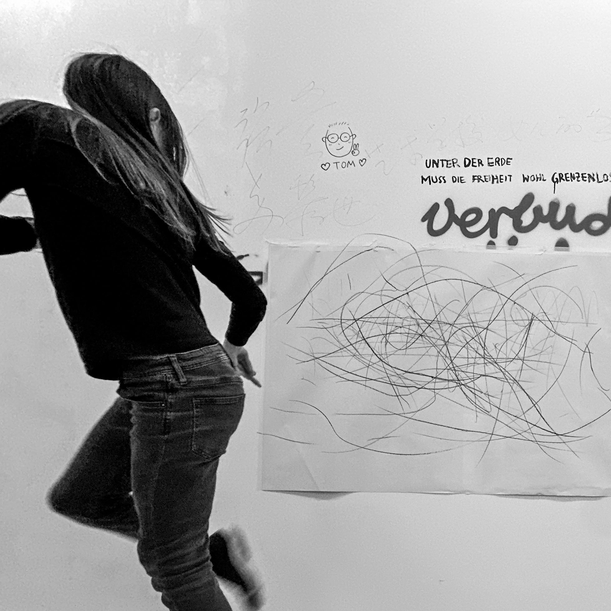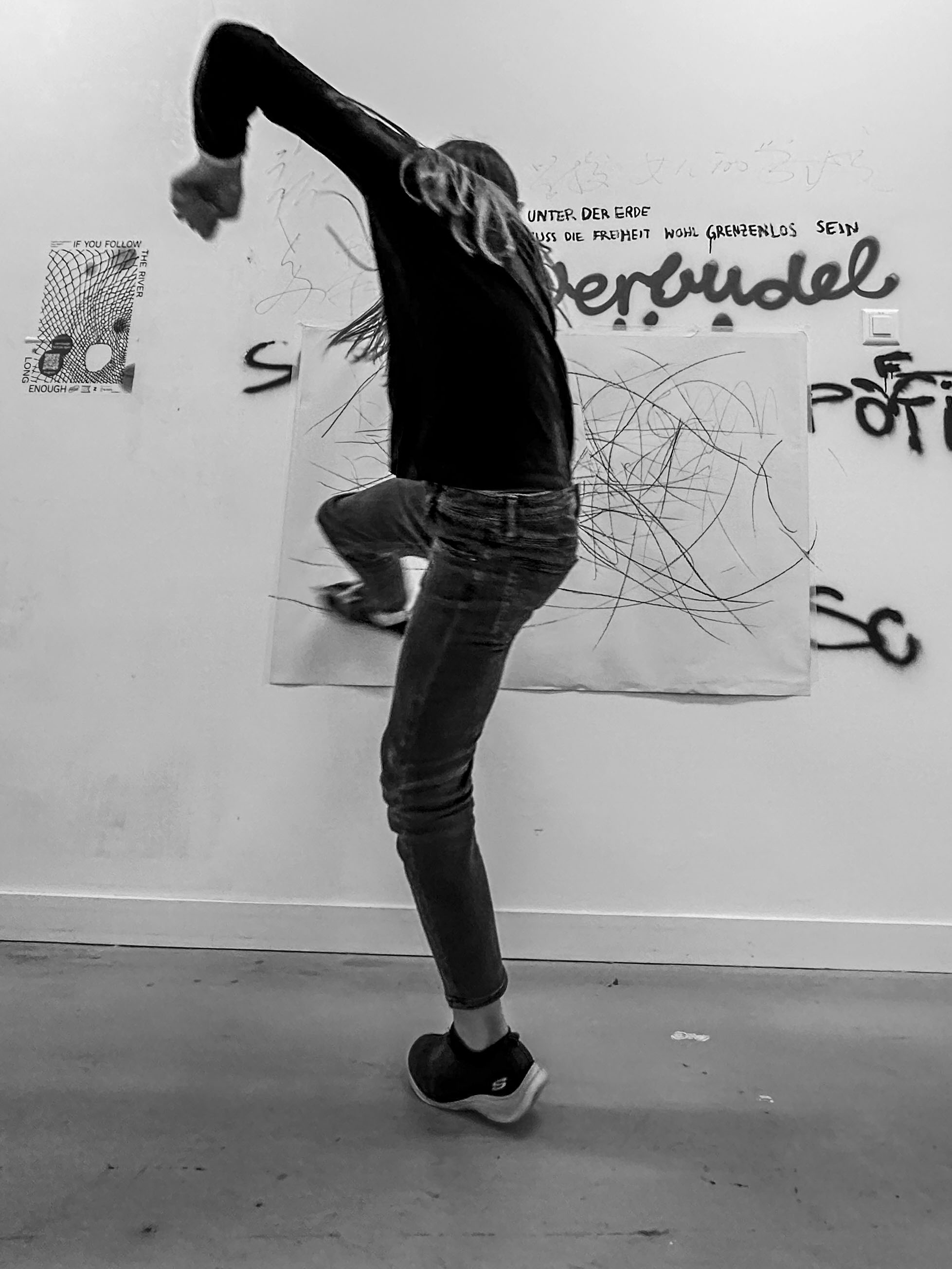 Zusammen mit meinem jüngeren Sohn, arbeitete ich am Zukunftstag 2024 an performativen Zeichnungen.