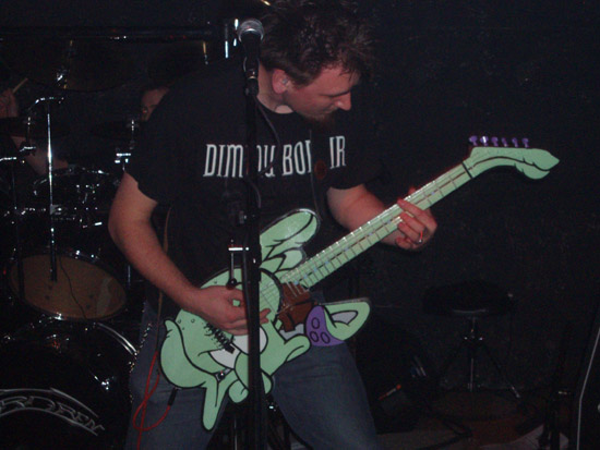 Für diese Gitarre griff ich auf einen bestehenden Hals (Washburn G2V) zurück und baute dafür einen Korpus (Linde) auf. Die Gitarre ist voll funktionsfähig, hat eine gute Seitenlage und ist nicht kopflastig. Sie war DER Hingucker bei meinen damaligen Auftritten mit der Speedmetal-Band „Lordern“.