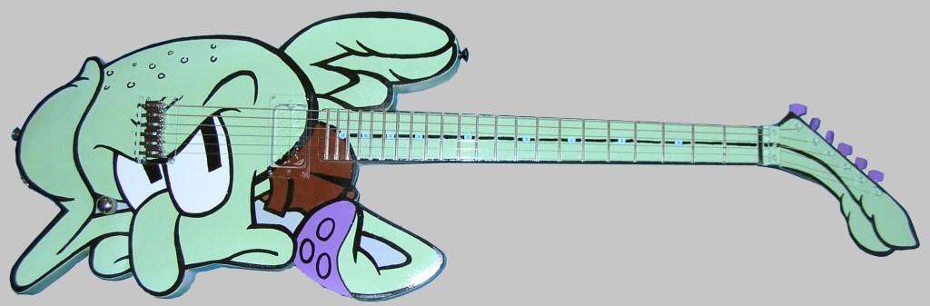 2009 baute ich diese E-Gitarre in Form des griesgrämigen, Thaddäus aus der Trickfilmserie Spongebob.