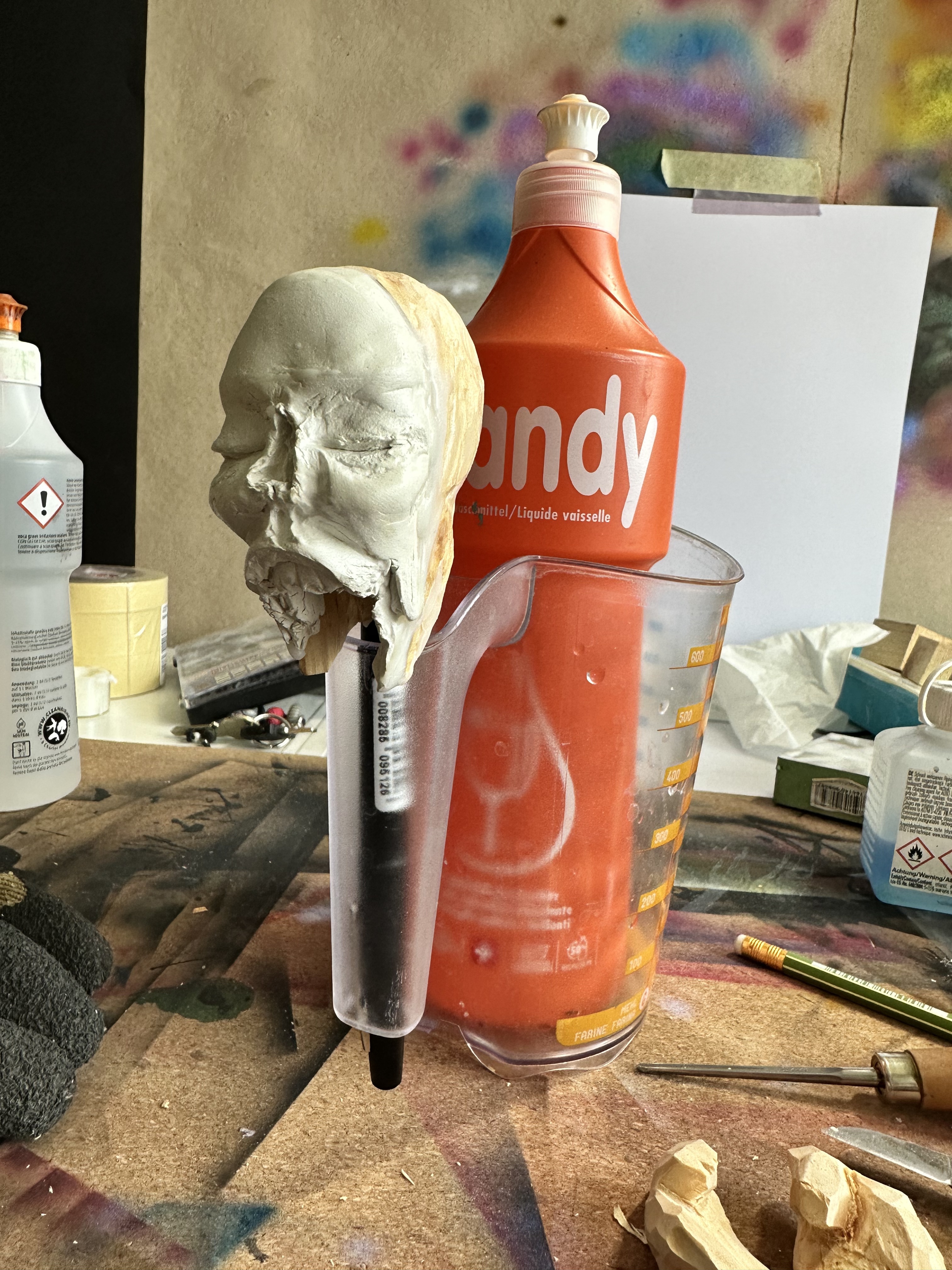 Plötzlich war sie da, unverhofft und klar. Noch an der ZHdK begann ich die Figur zu schnitzen, konnte sie jedoch erst später fertigstellen.
