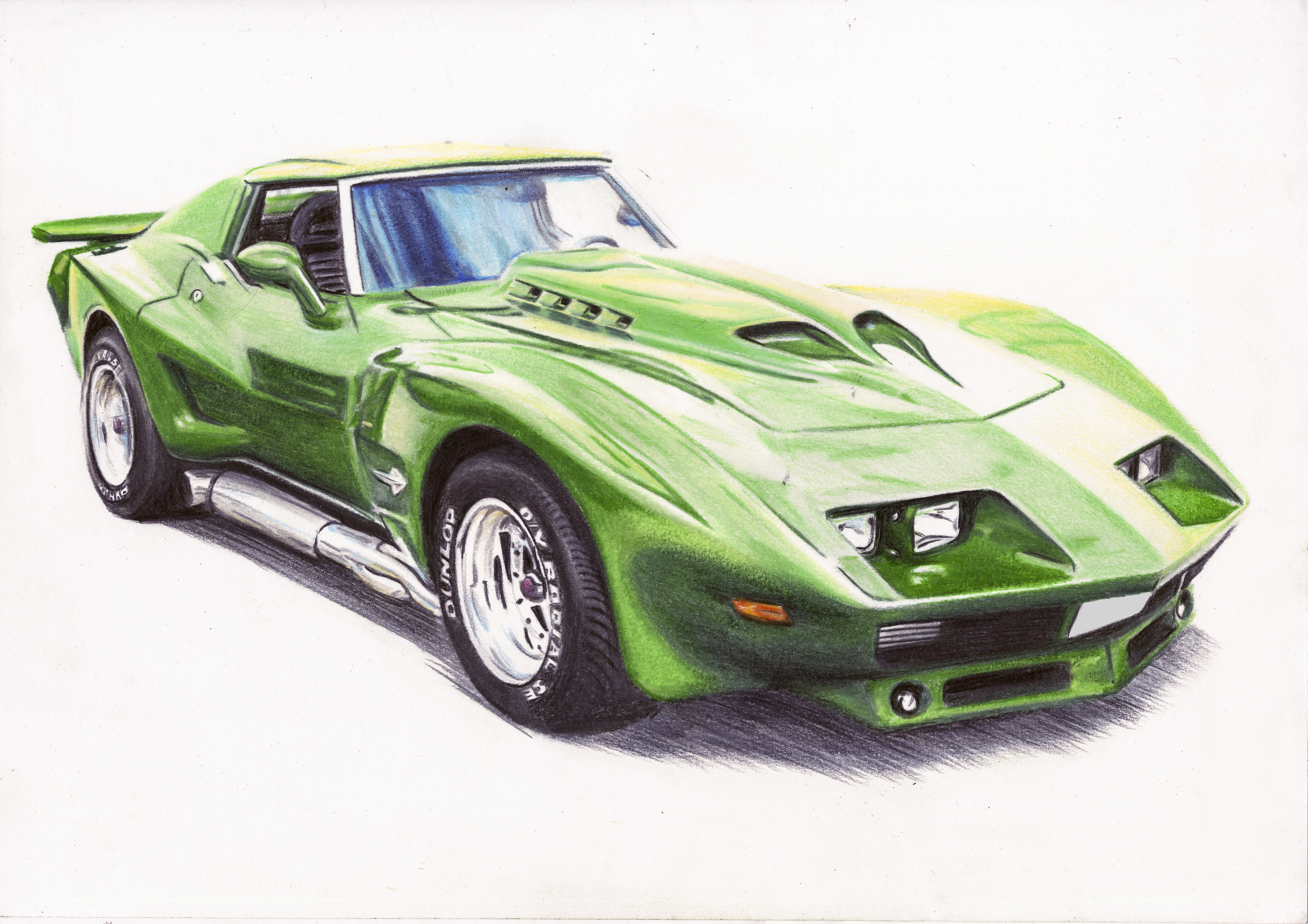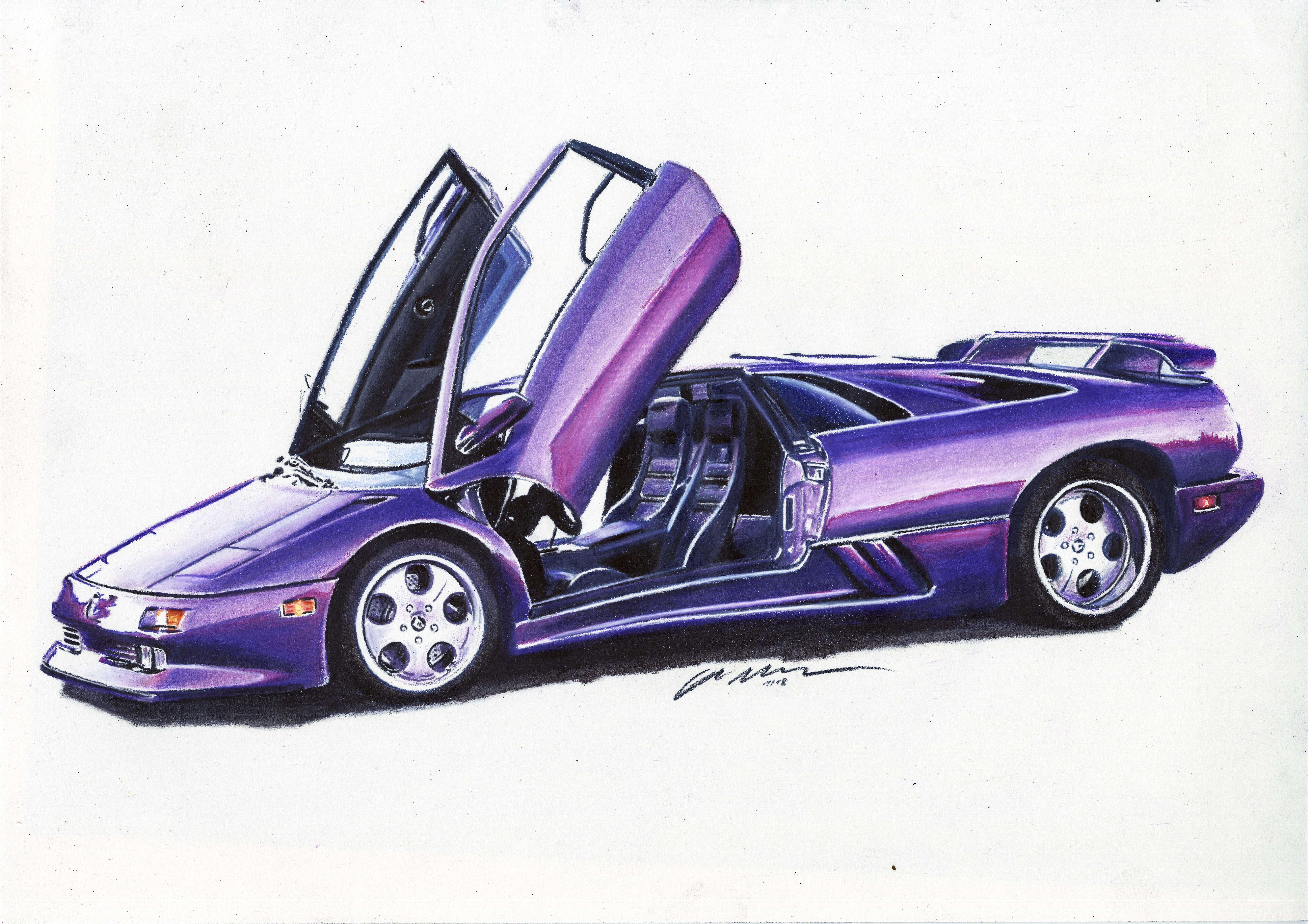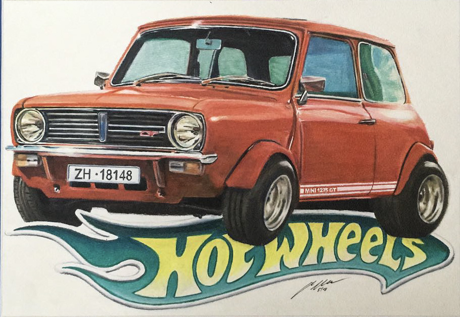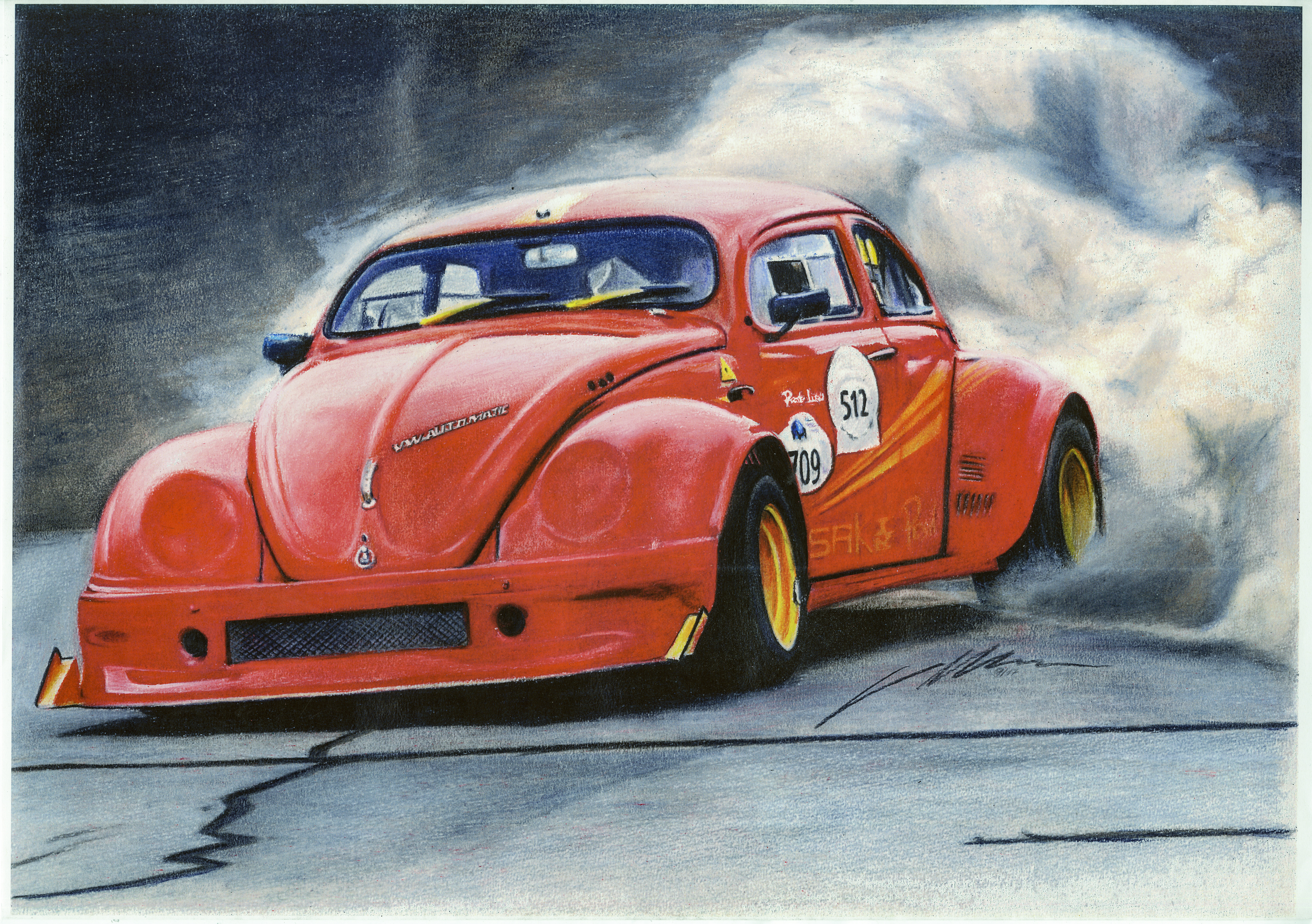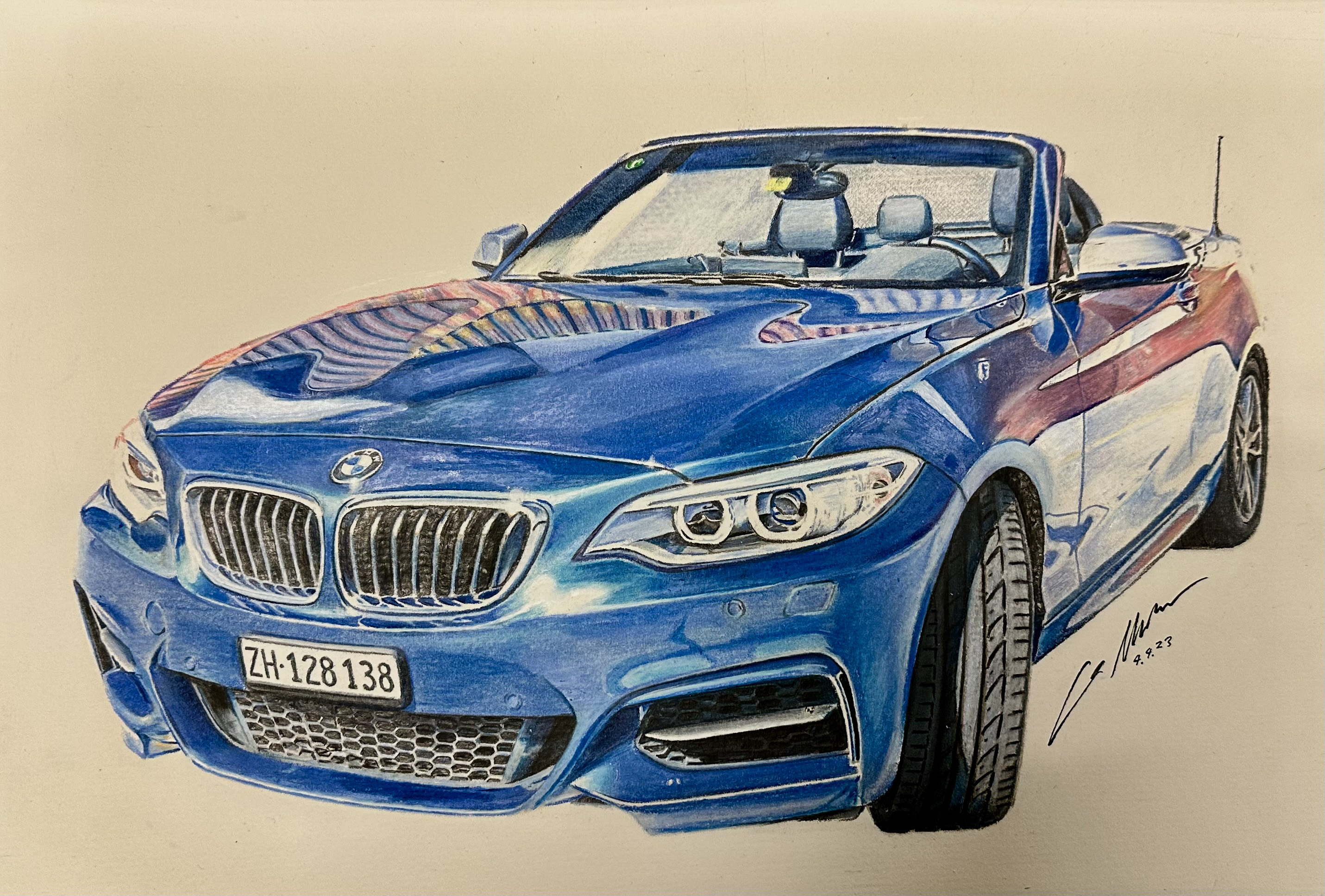 Die folgenden Bilder sind keine Freihandzeichnungen. Während vier Jahren verfolgte ich das Ziel, fotorealistische Illustrationen von Fahrzeugen zu erreichen. Ich elaborierte eine eigene Paus-Technik und entwickelte diese sowie auch den Einsatz verschiedener Malwerkzeuge konsequent weiter.