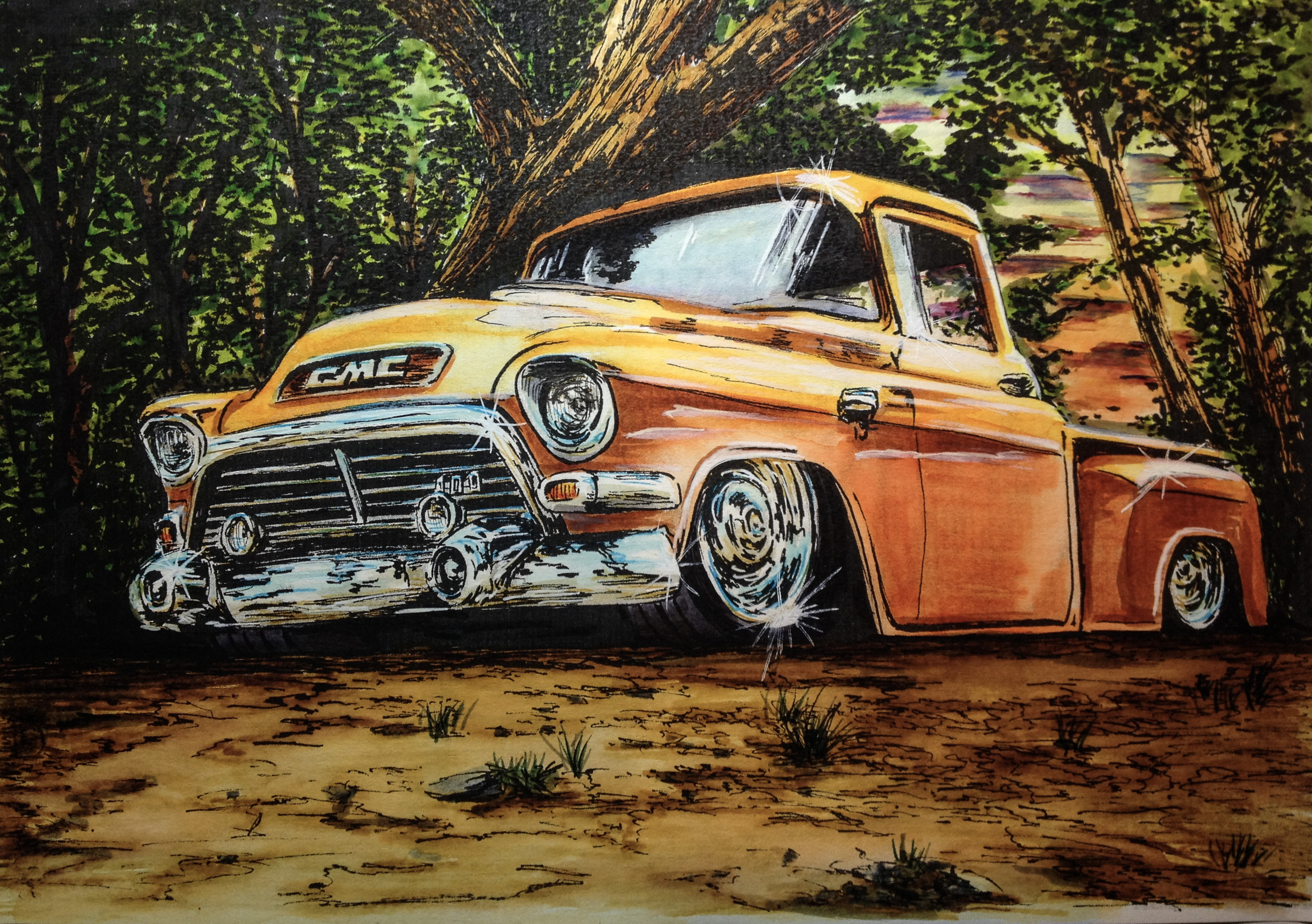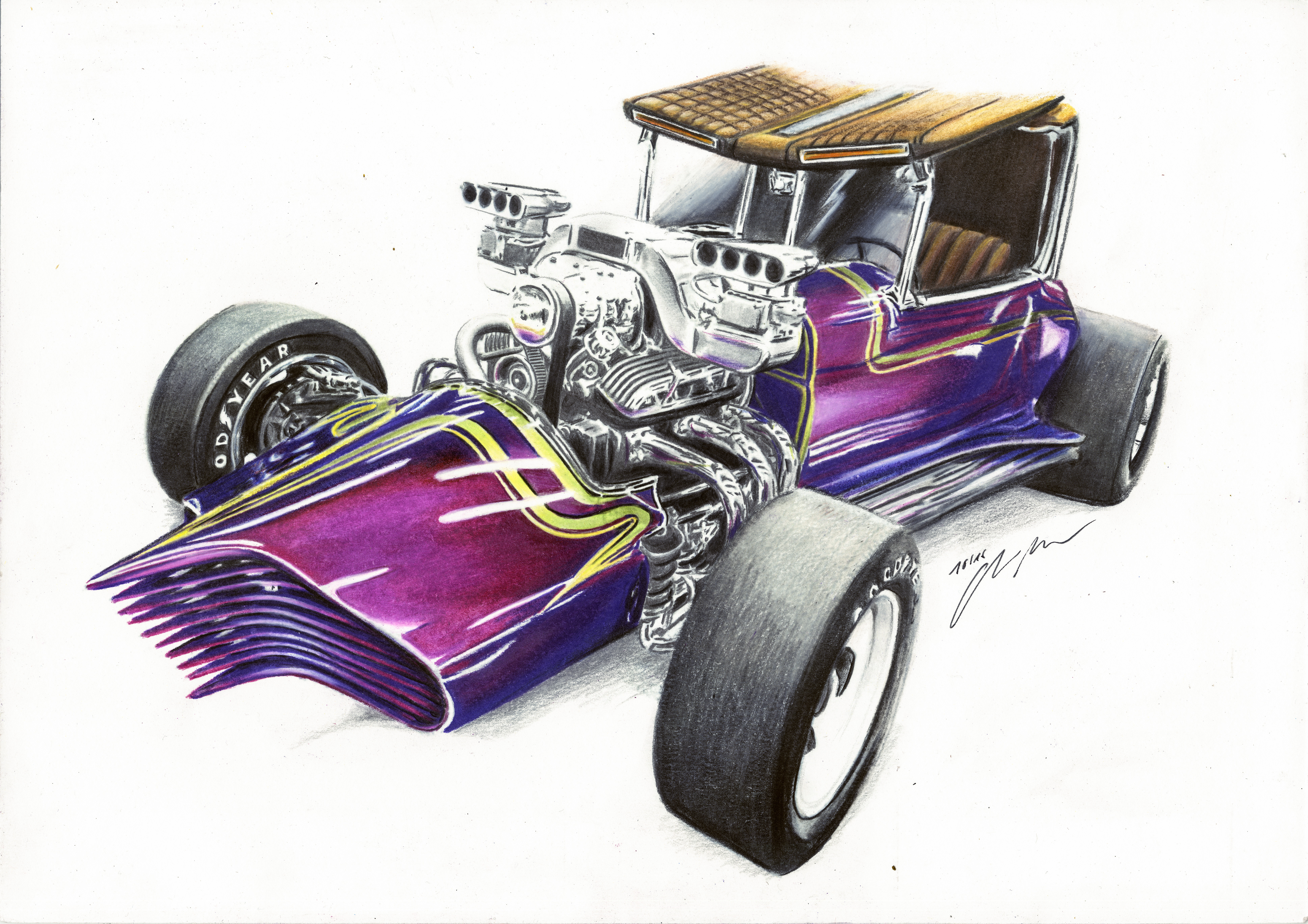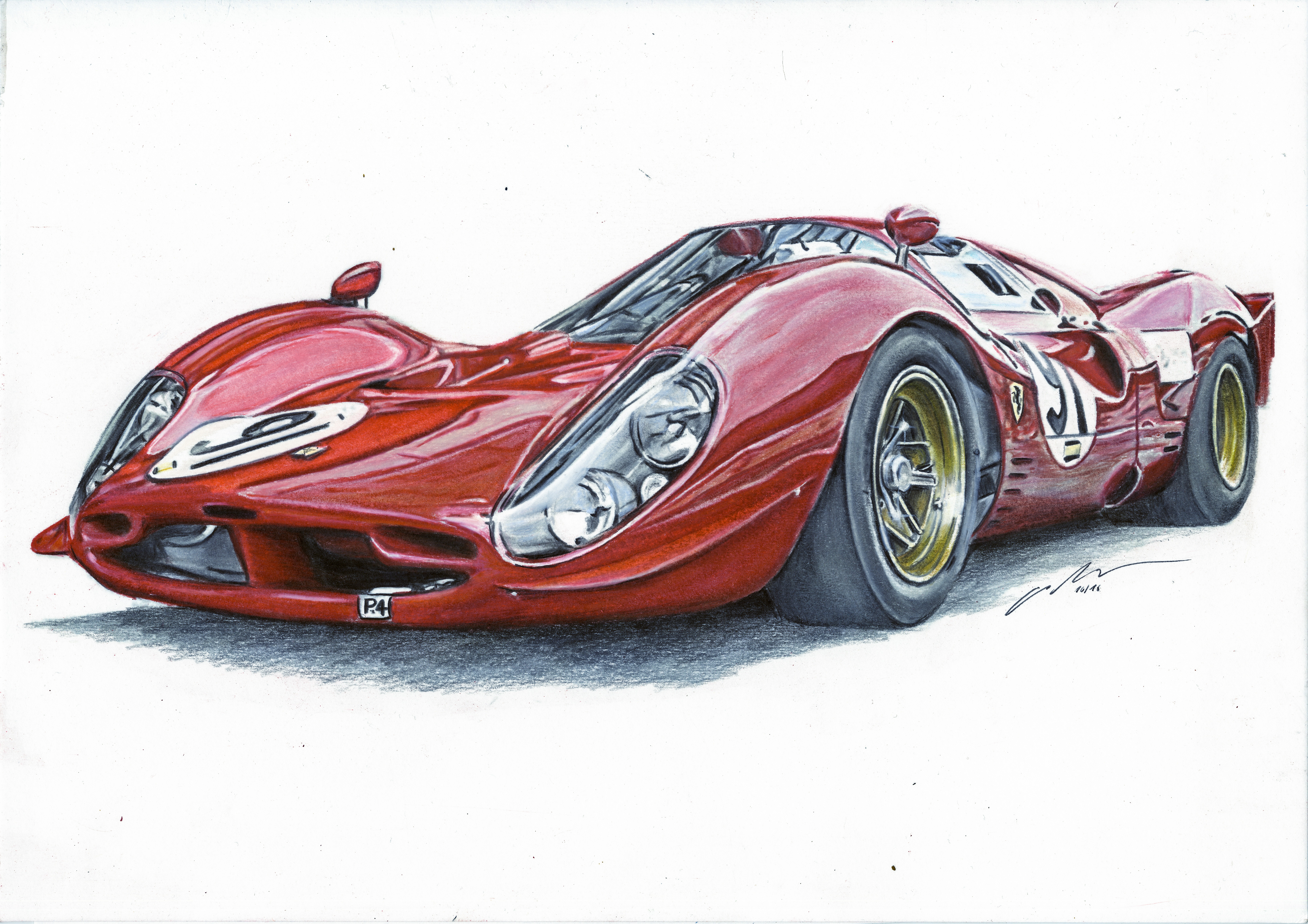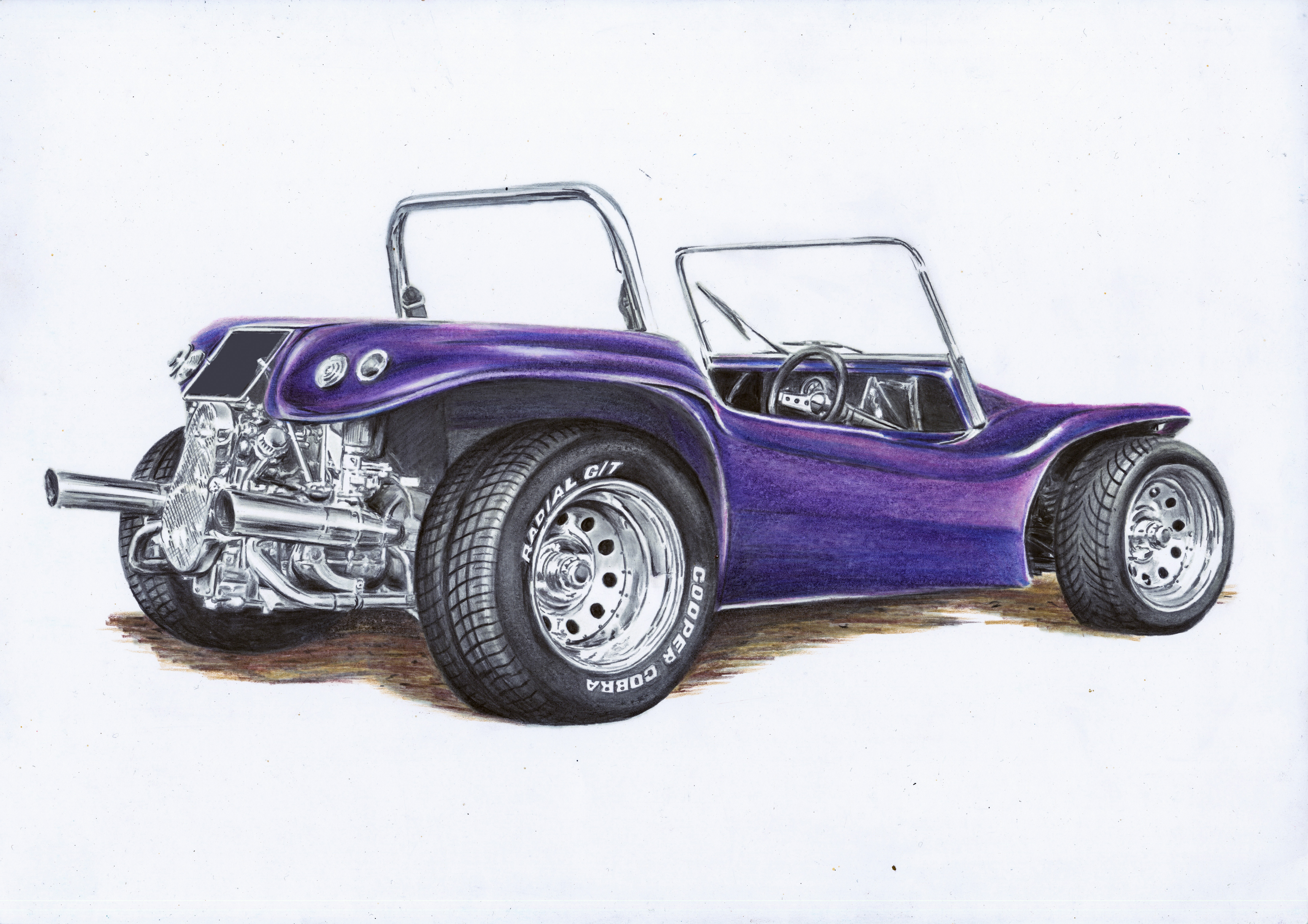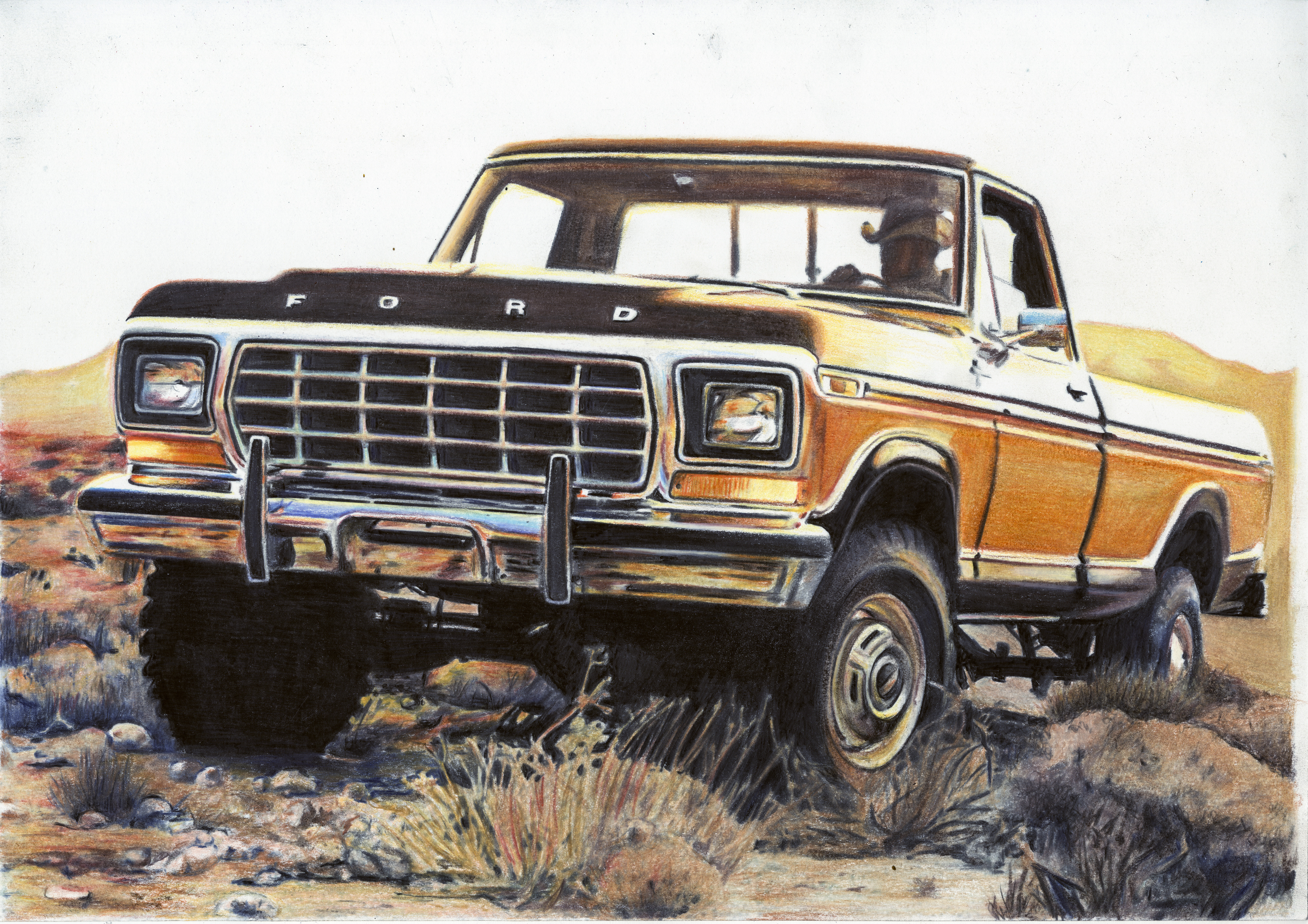 Die folgenden Bilder sind keine Freihandzeichnungen. Während vier Jahren verfolgte ich das Ziel, fotorealistische Illustrationen von Fahrzeugen zu erreichen. Ich elaborierte eine eigene Paus-Technik und entwickelte diese sowie auch den Einsatz verschiedener Malwerkzeuge konsequent weiter.